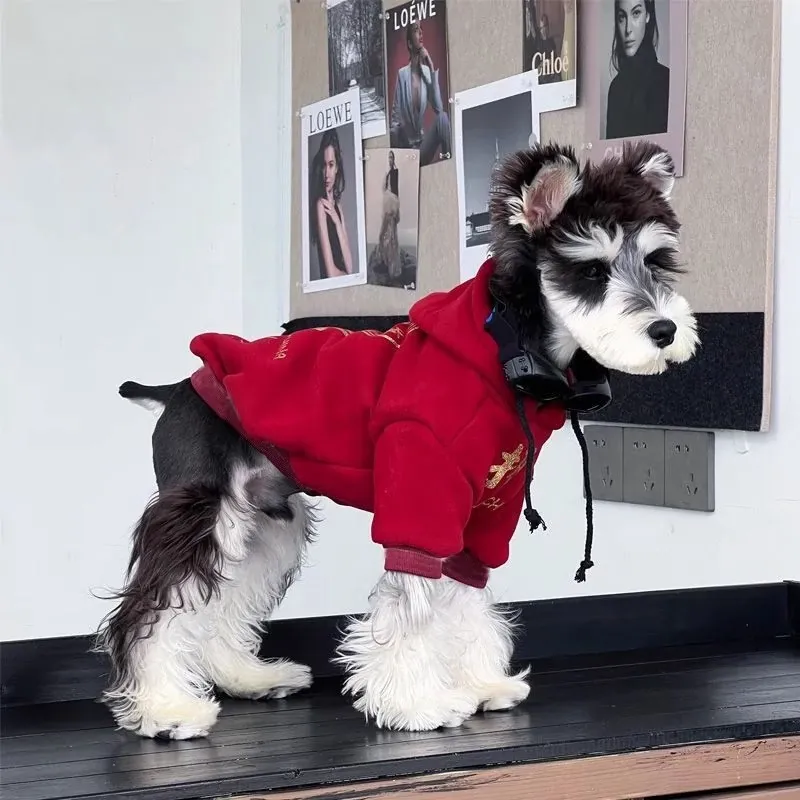 2026年新作!可爱な犬用冬服 - ビション・シュナウザーにぴったりの新年お祝いマント&猫ちゃん・小犬用のフード付きスウェット!寒い季節を楽しく過ごすための必需品!