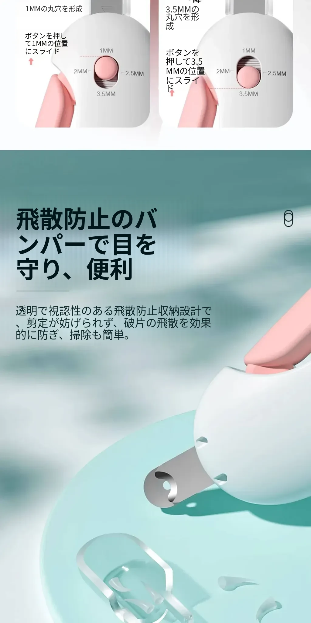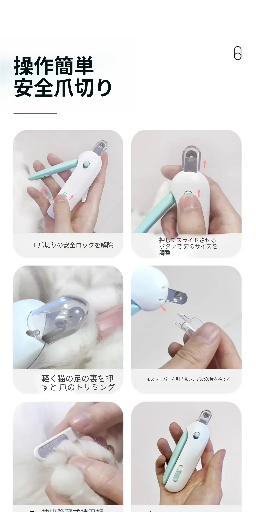猫用爪切り - 調整可能な小型ブラインドカッター!初心者に最適なラウンドホールデザインで、安心・安全に猫の爪をカット。大切なペットに快適さを提供します!