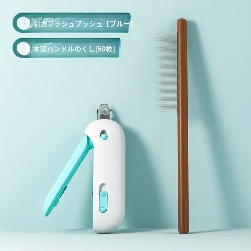 ブルーのプッシュハサミ【穴径調節可能 猫専用】
