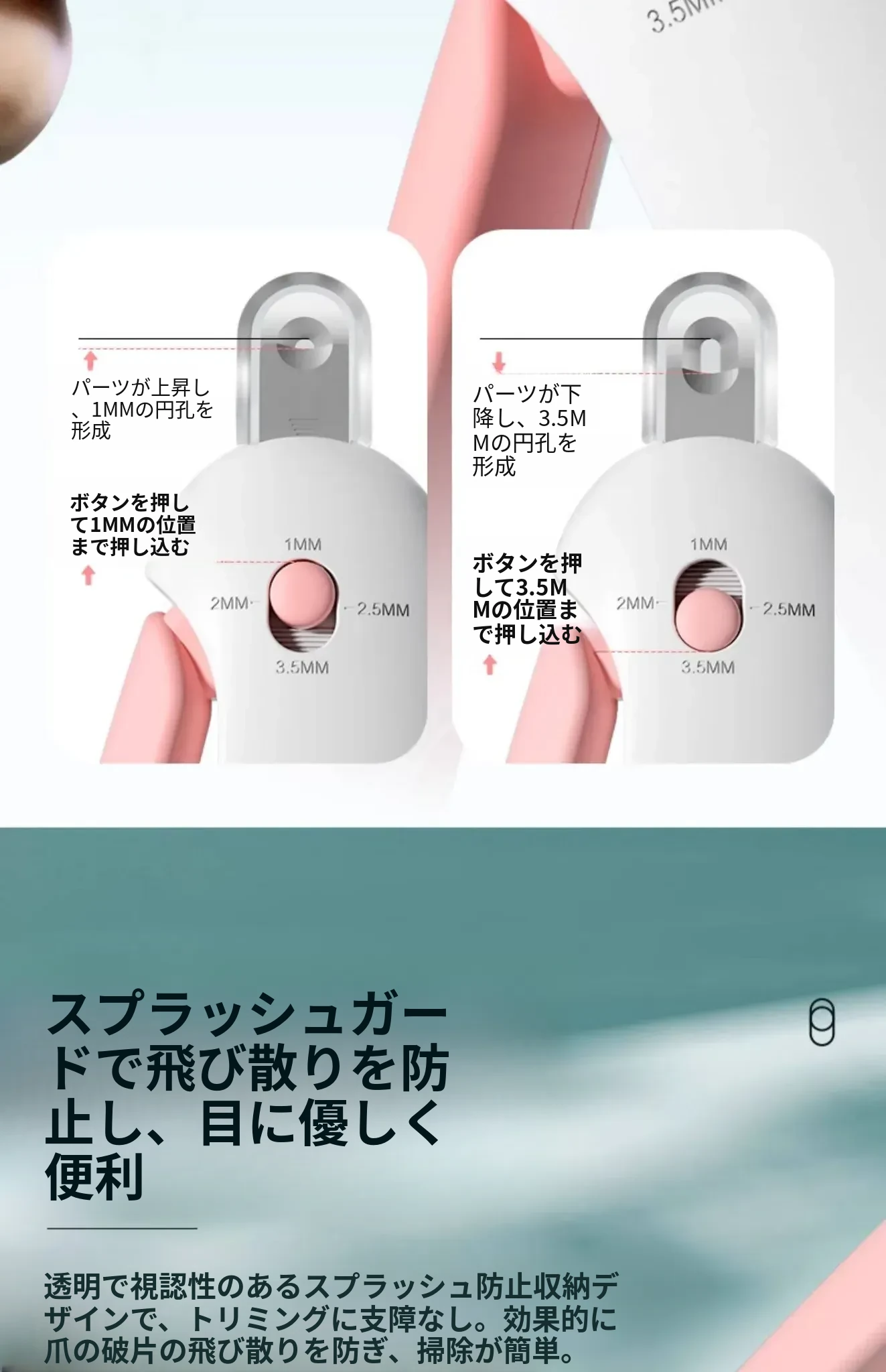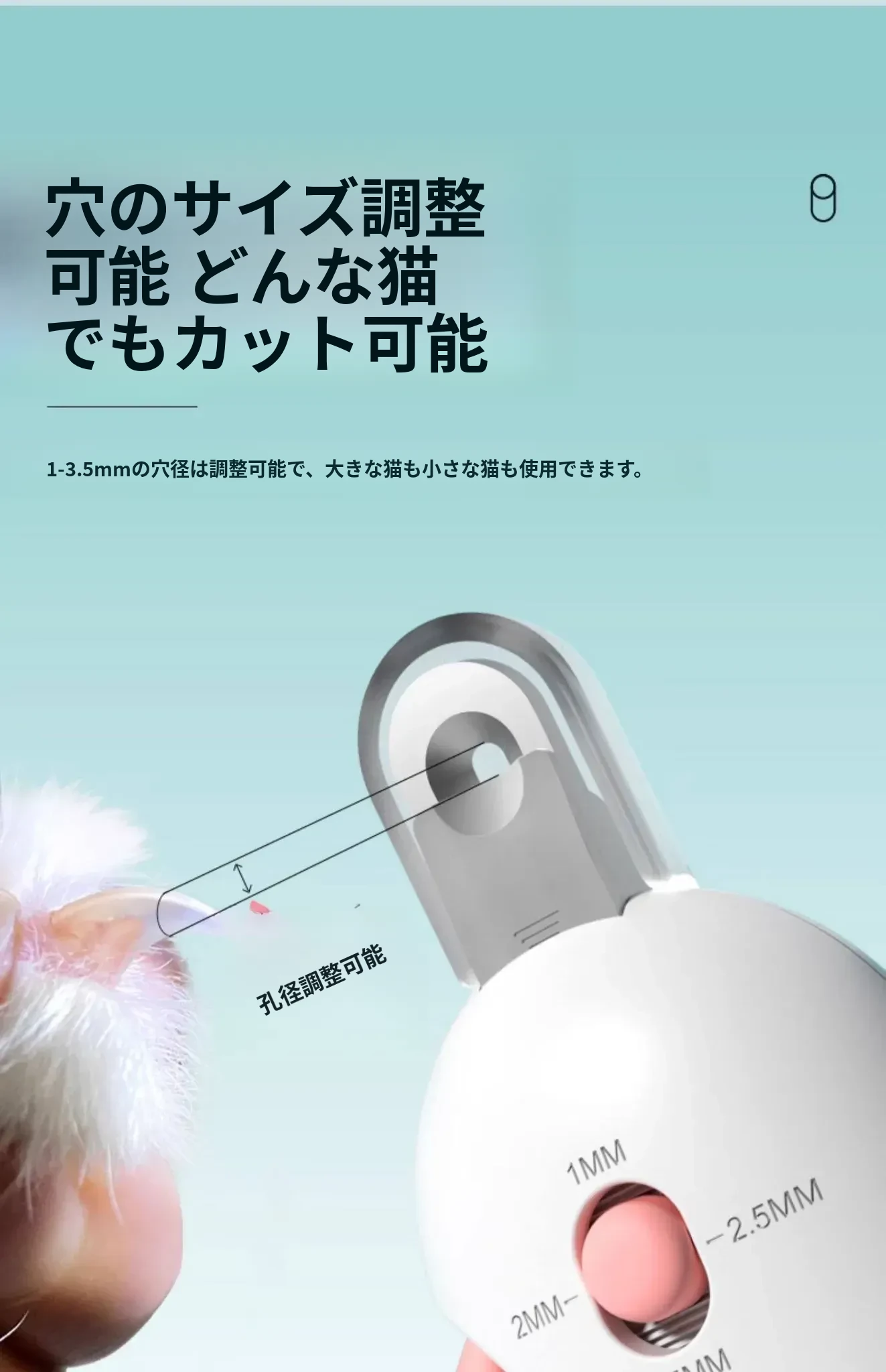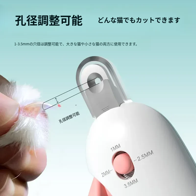 初心者に最適!調整可能な猫用爪切り - 丸穴デザインで安全に簡単に爪を切れるペット用ネイルクリッパー。愛猫の爪のお手入れを楽に、安心して行えます!