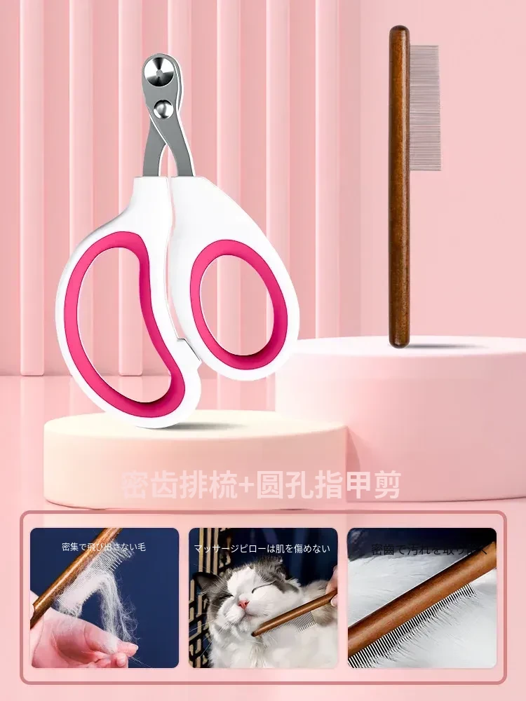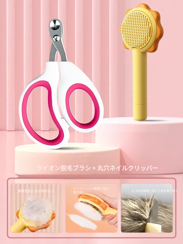 (ピンク版)丸穴爪切り+ゴールデンライオン自動清掃コーム
