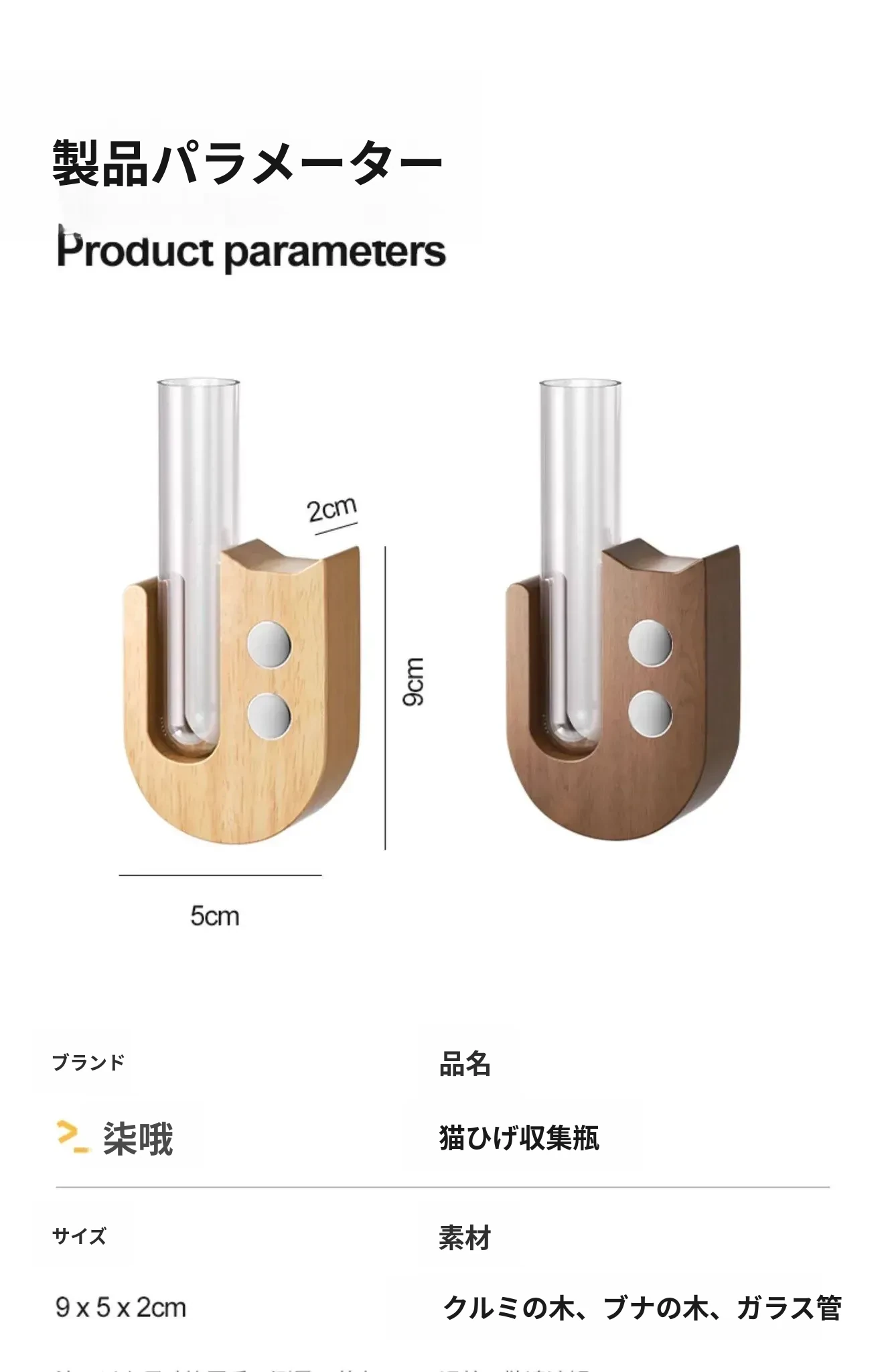 【ブナ】+【ブラックウォールナット】猫耳マグネットタイプ-収集瓶