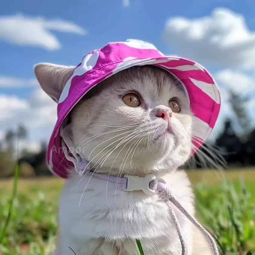 かわいい耳出し猫帽子!夏の紫外線対策に最適な犬猫兼用のフィッシャーハット。デヴォンレックスやブリティッシュショートヘアのペットにぴったり!おしゃれで愛らしいスタイルを実現します。