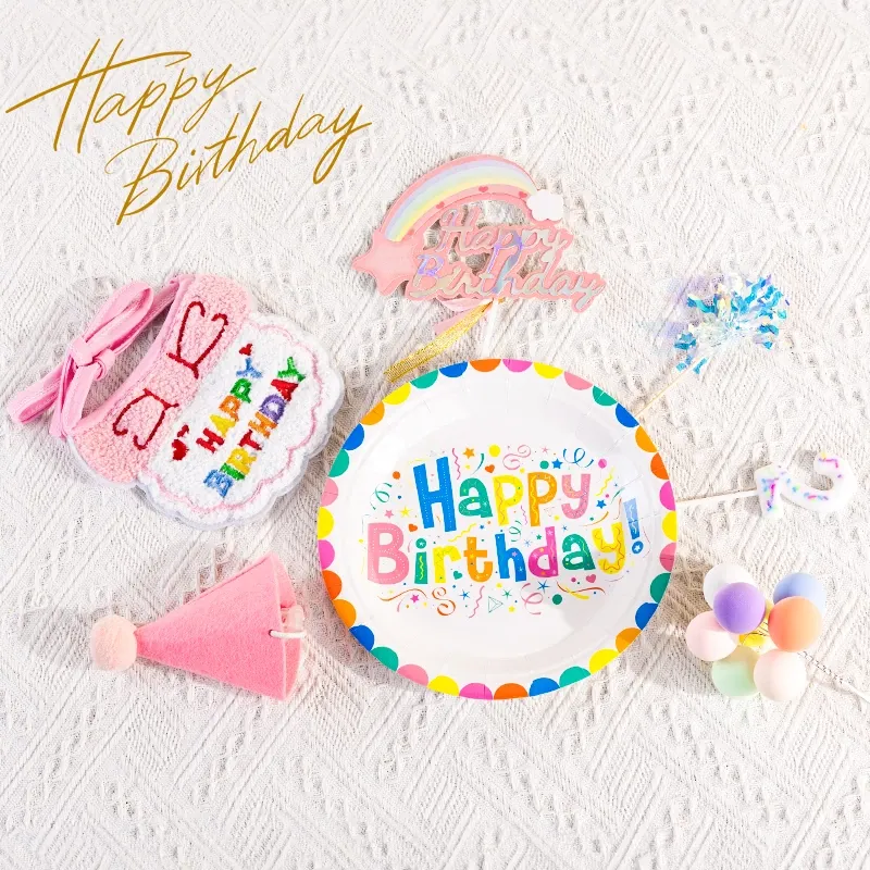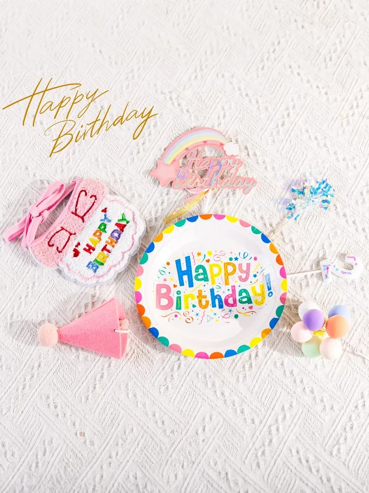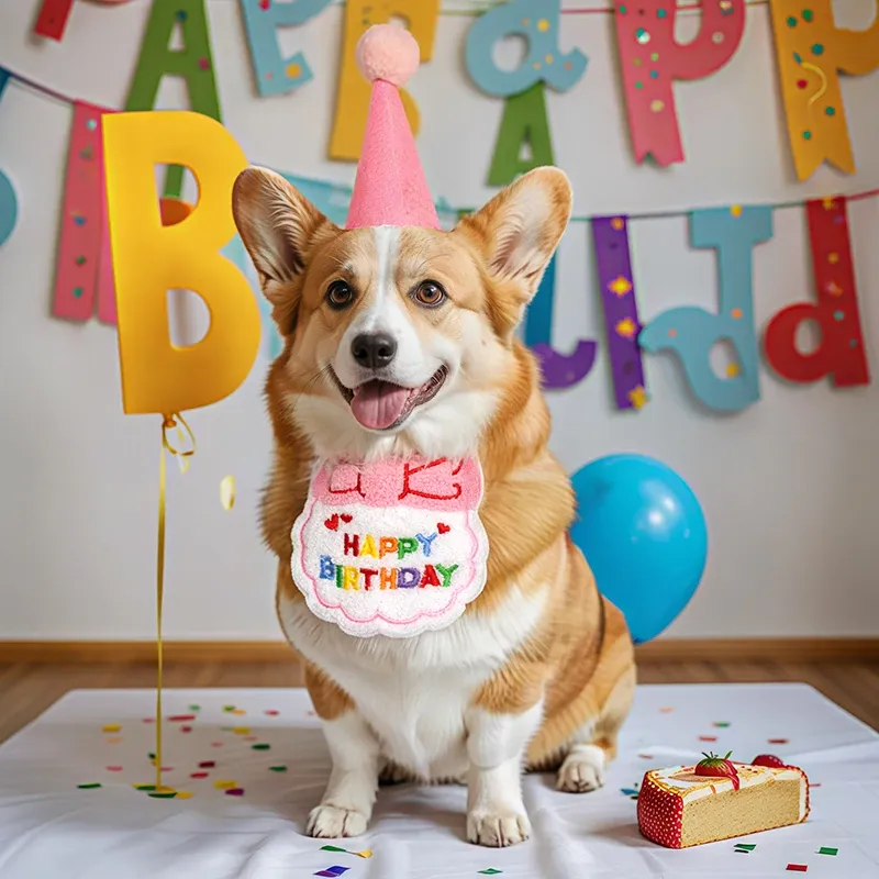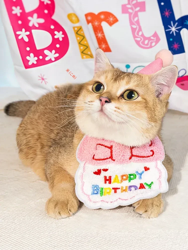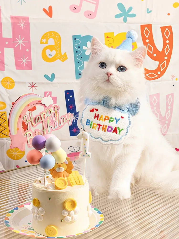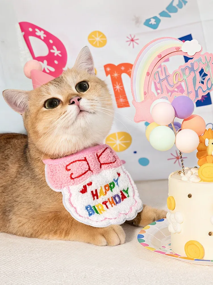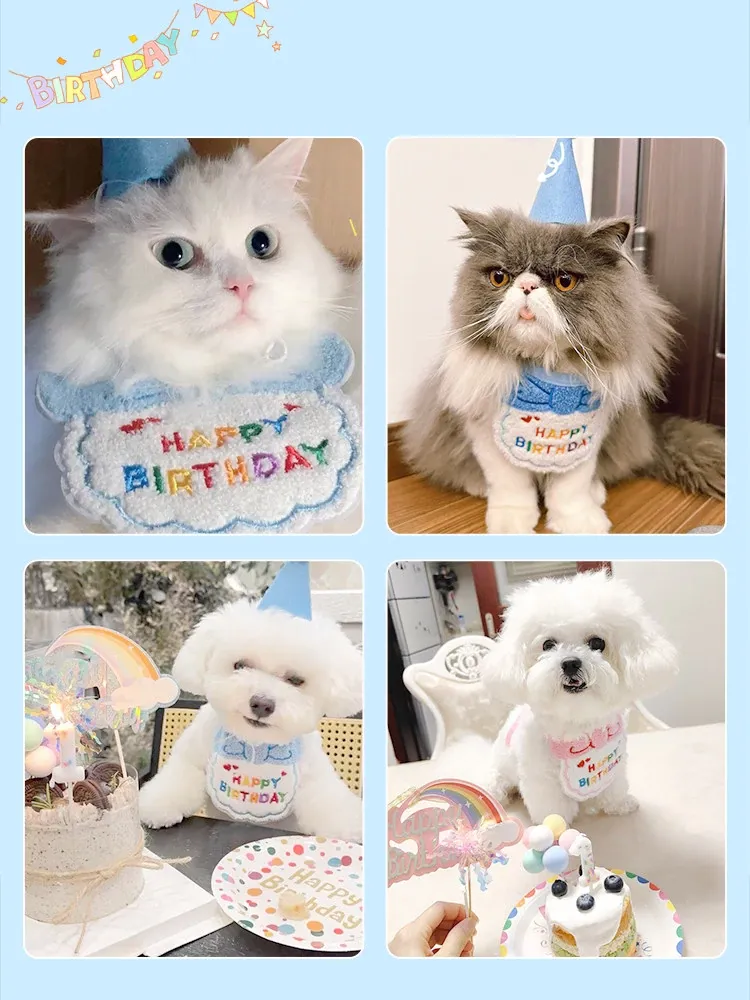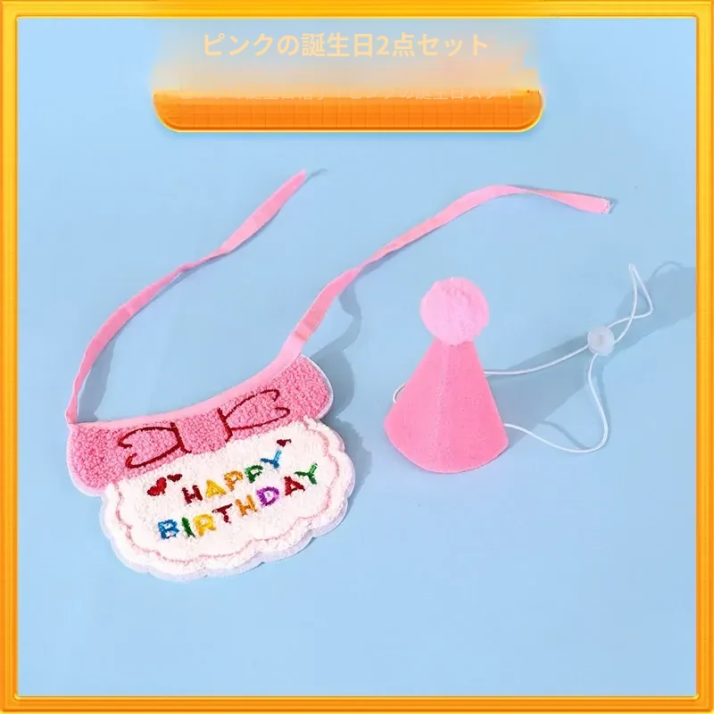 犬用よだれかけ エプロン おしゃれな犬猫用バースデーコスチューム 小型犬用ケーキネックレス デコレーション付きエプロン キャップセットで特別な日を演出!