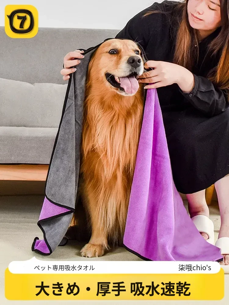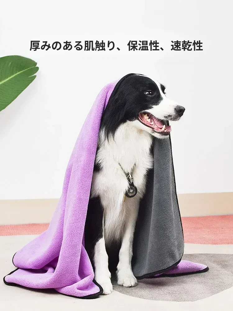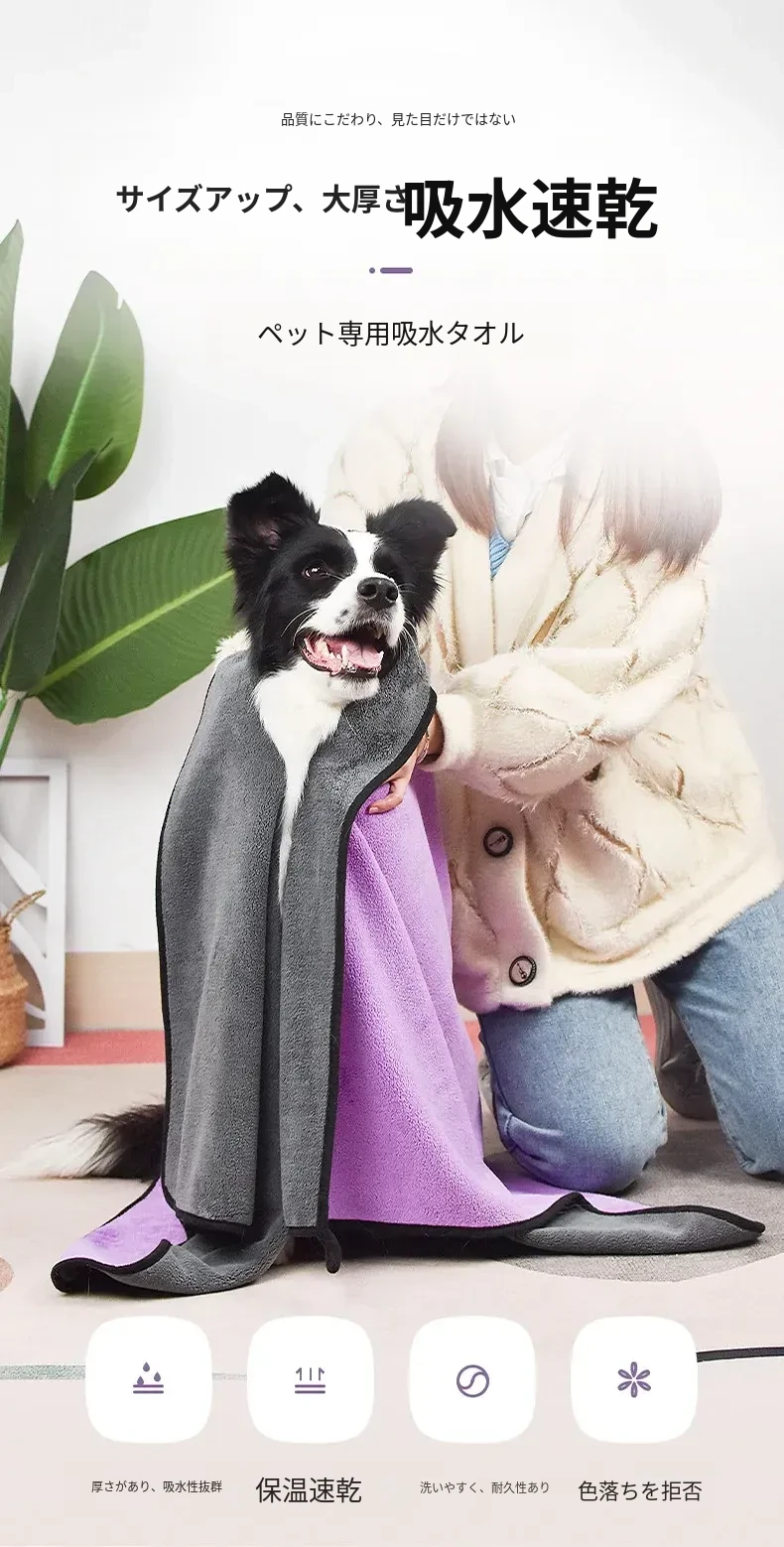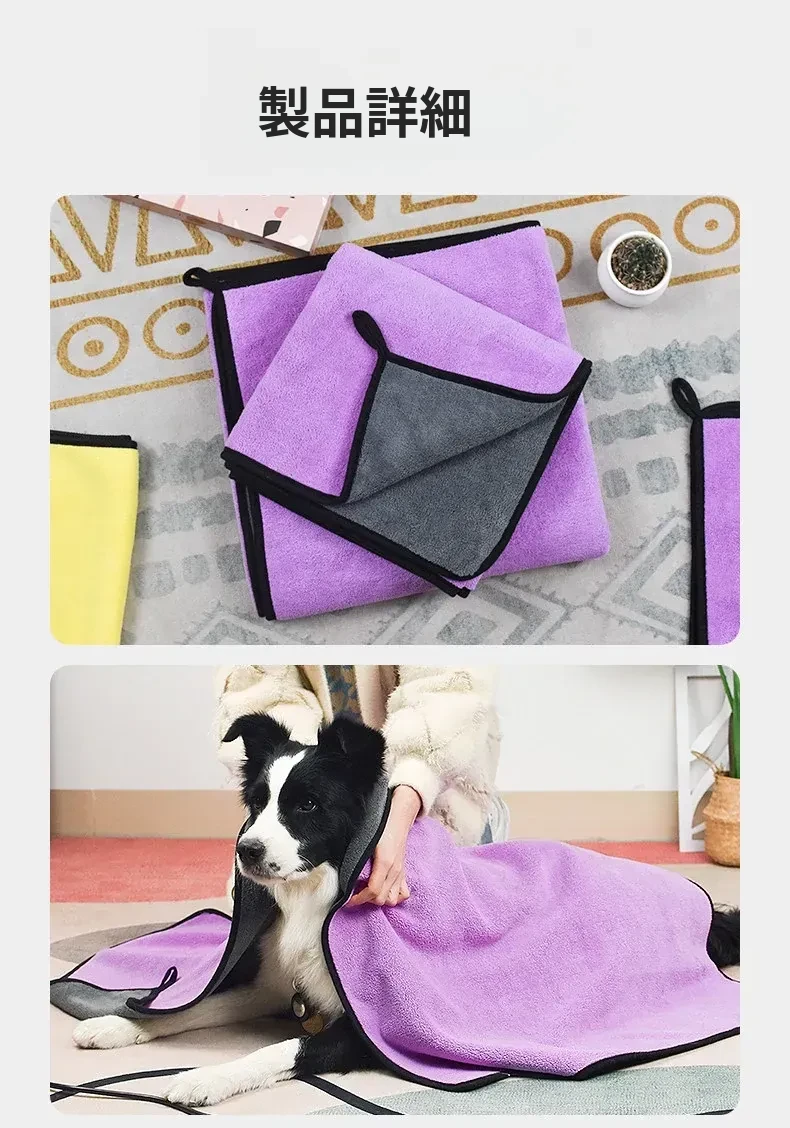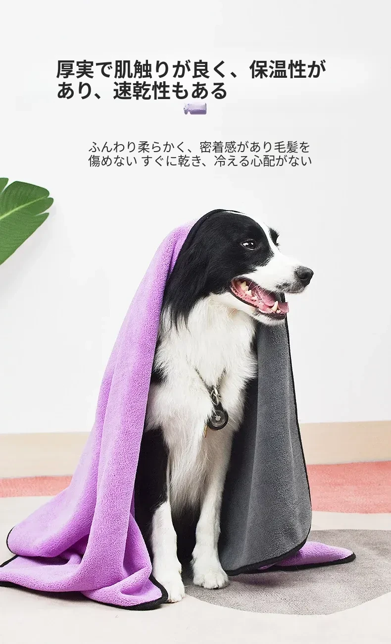 ペット用超吸水タオル【厚手速乾】特大サイズ!犬猫用バスタオル、毛がつきにくい!お風呂後もすぐ乾くから、愛するペットを快適にケアできます♪