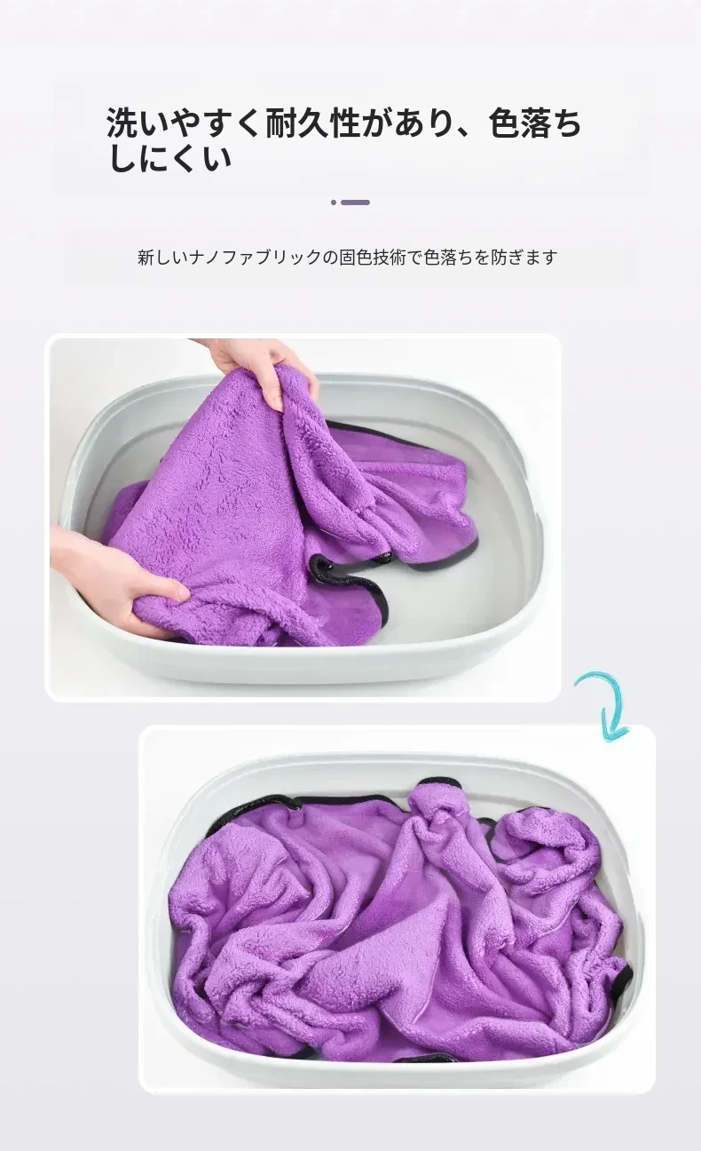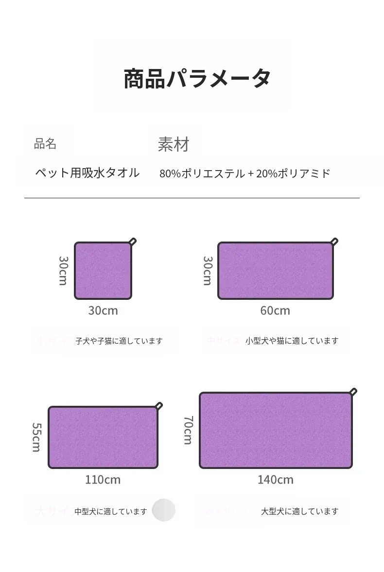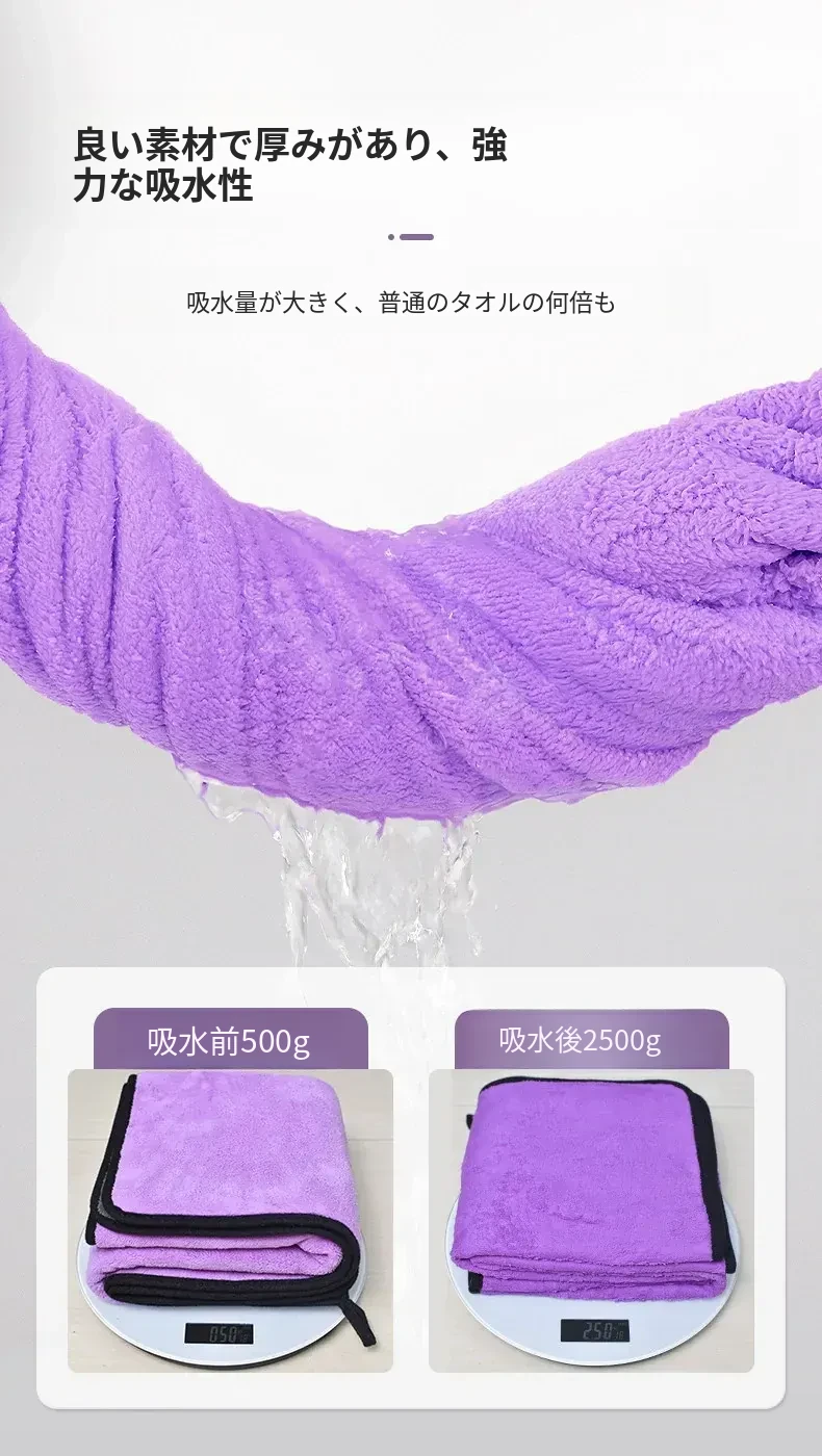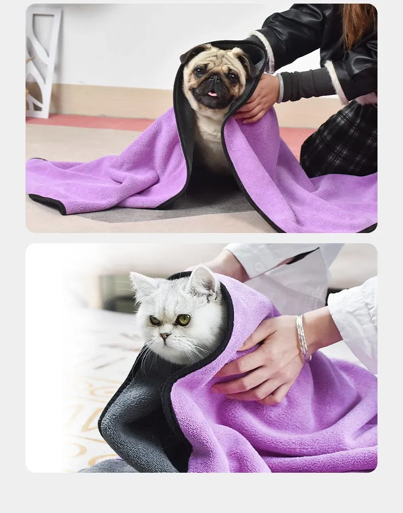 ペット用超吸水タオル【厚手速乾】特大サイズ!犬猫用バスタオル、毛がつきにくい!お風呂後もすぐ乾くから、愛するペットを快適にケアできます♪