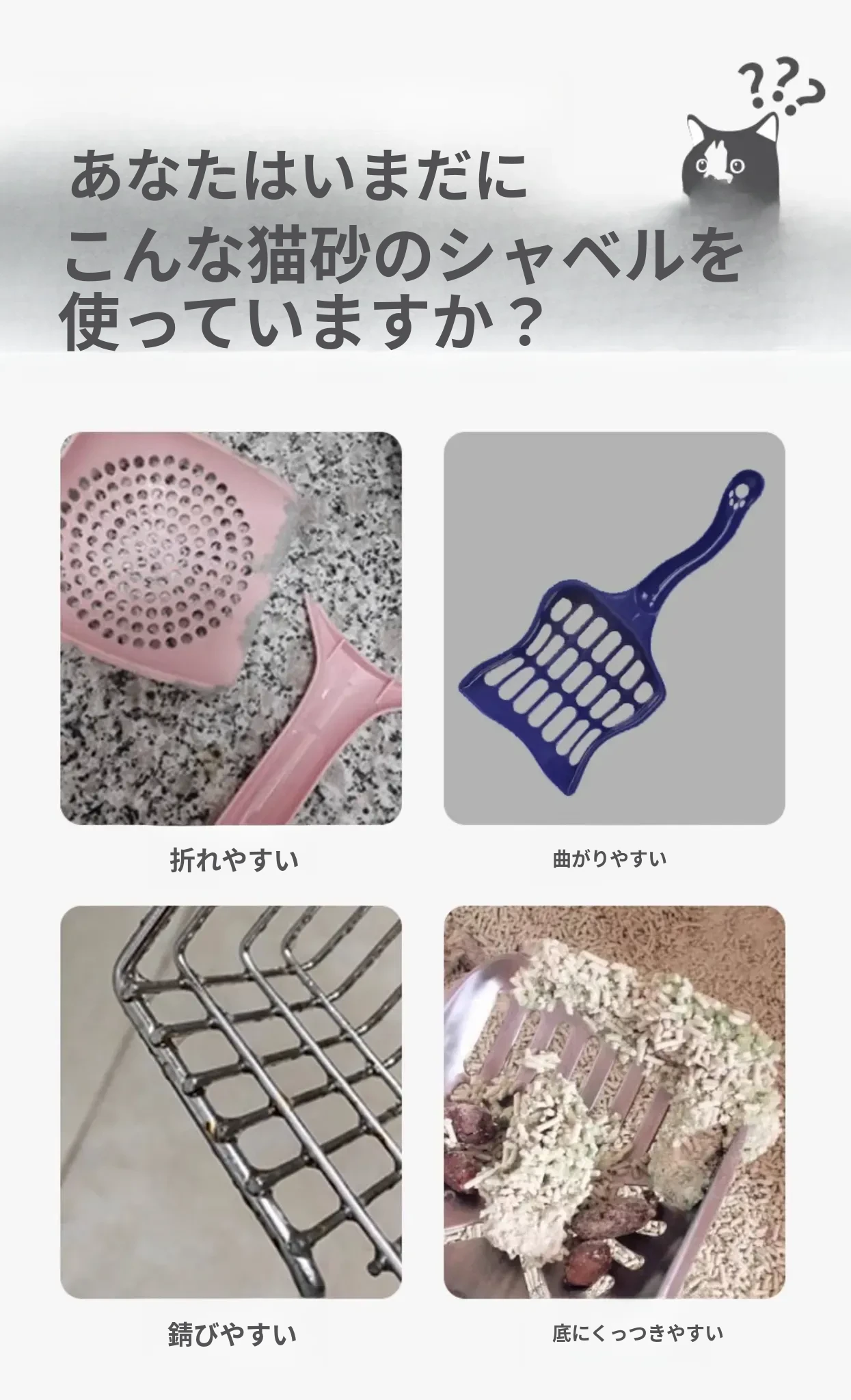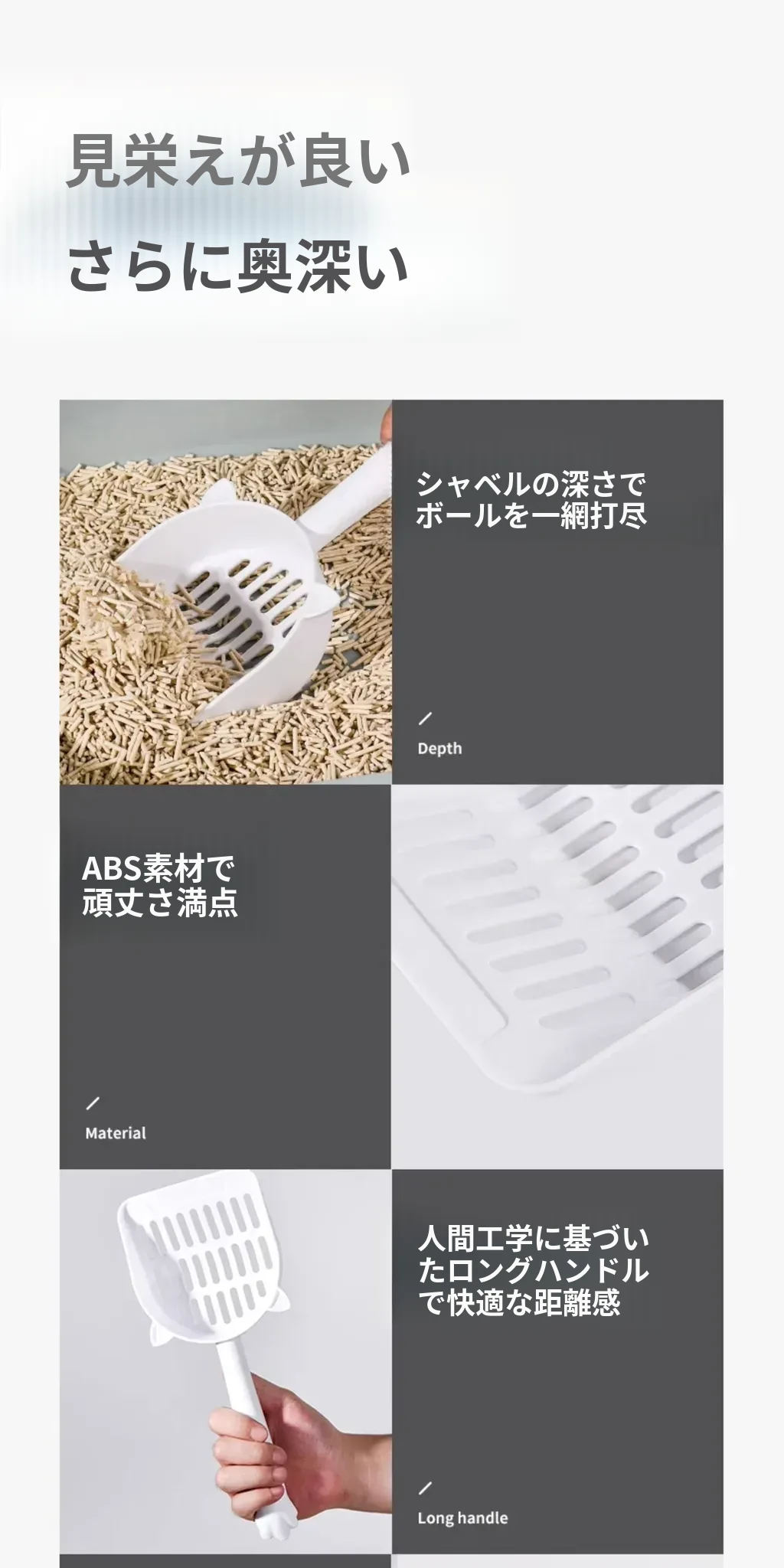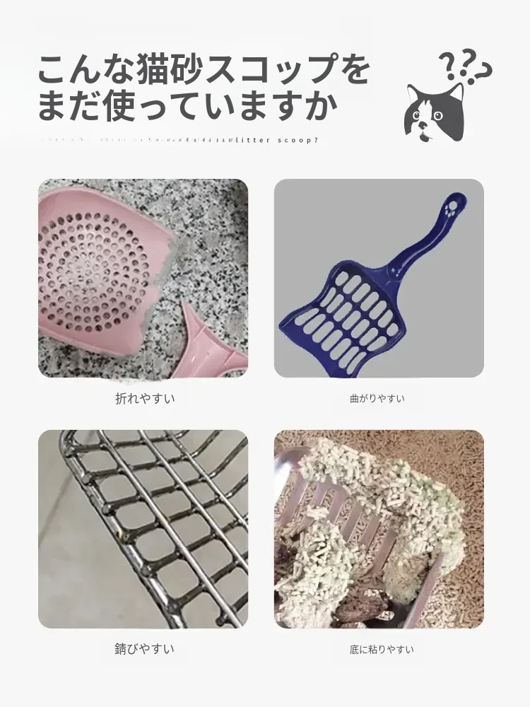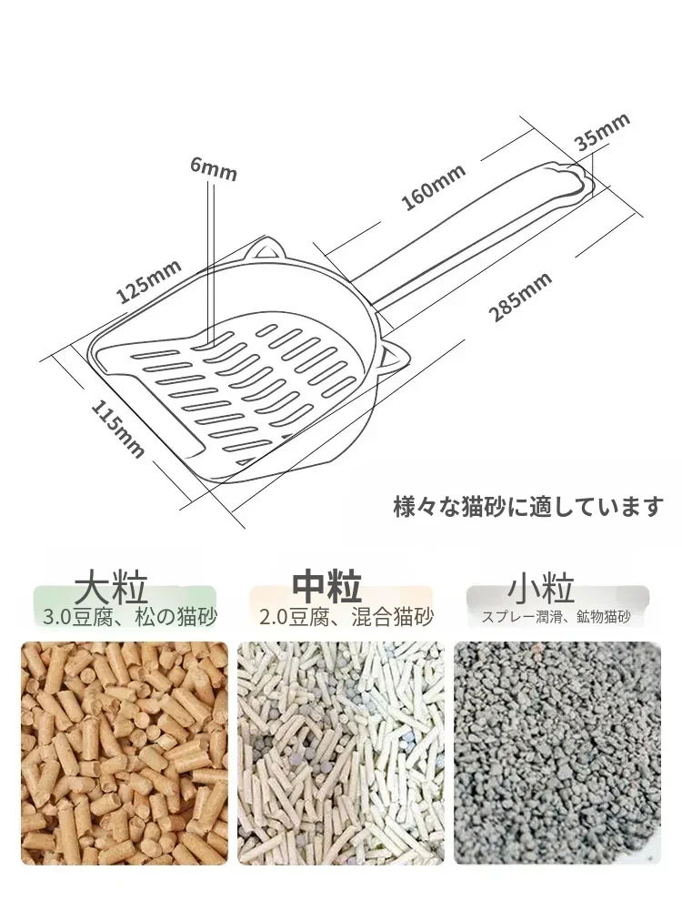 猫用トイレ掃除スプーン|大容量&小穴タイプで楽々清掃!豆腐砂・膨潤土対応の猫砂用便利ツール!快適なネコライフをサポートします!
