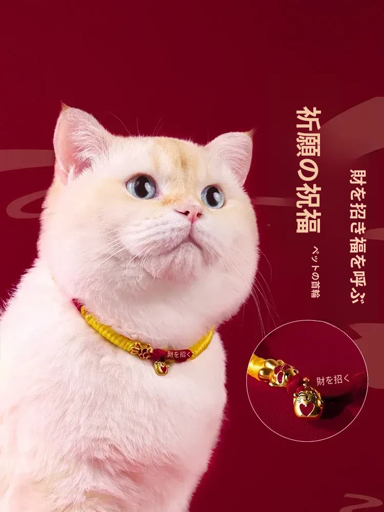猫ちゃん用新年首輪!愛らしい鈴付きで迷子防止、長寿のお守りも兼ねたペットネックレス!新年の特別なアクセサリーで、あなたの愛猫をもっと可愛く演出します!