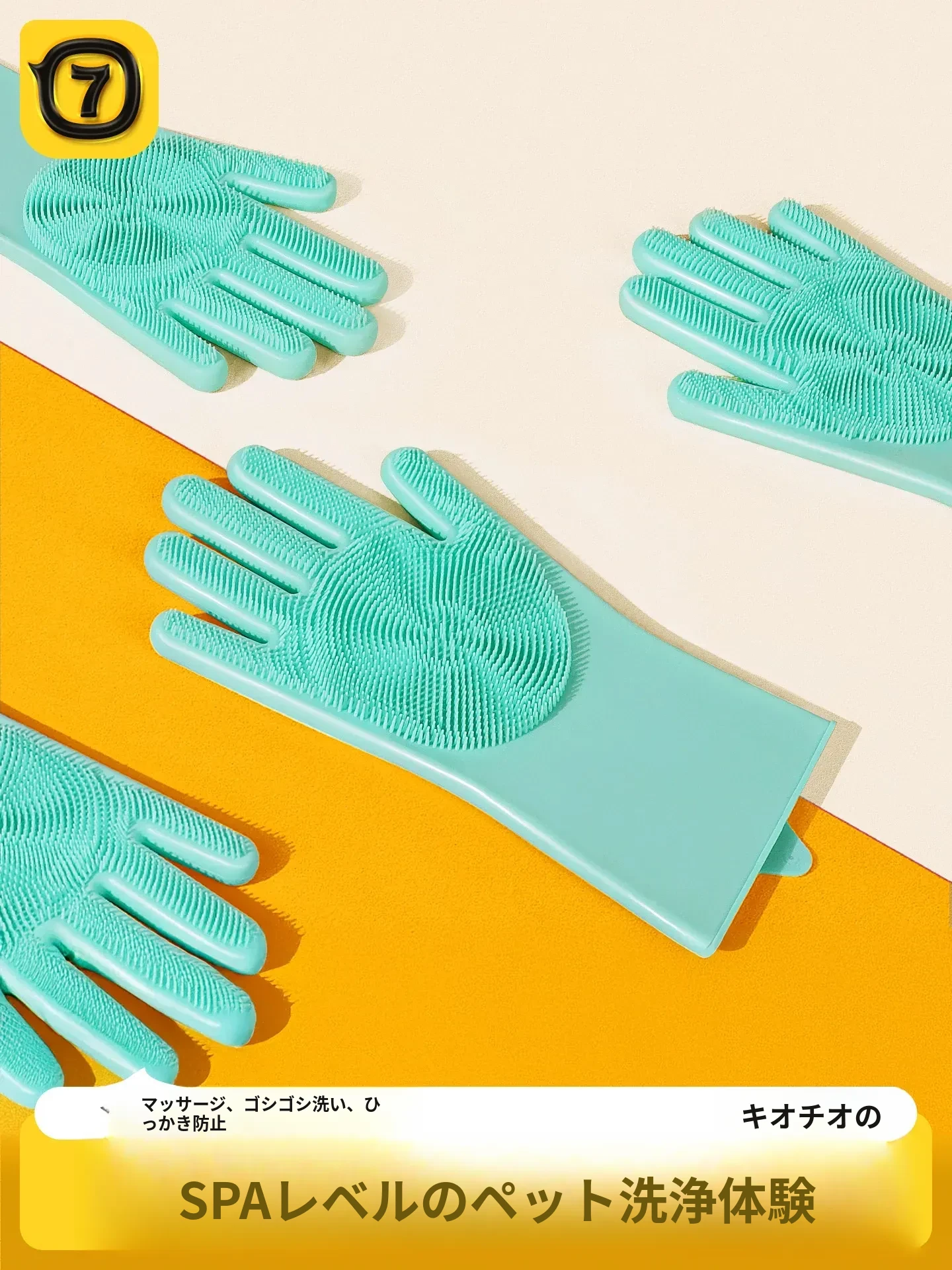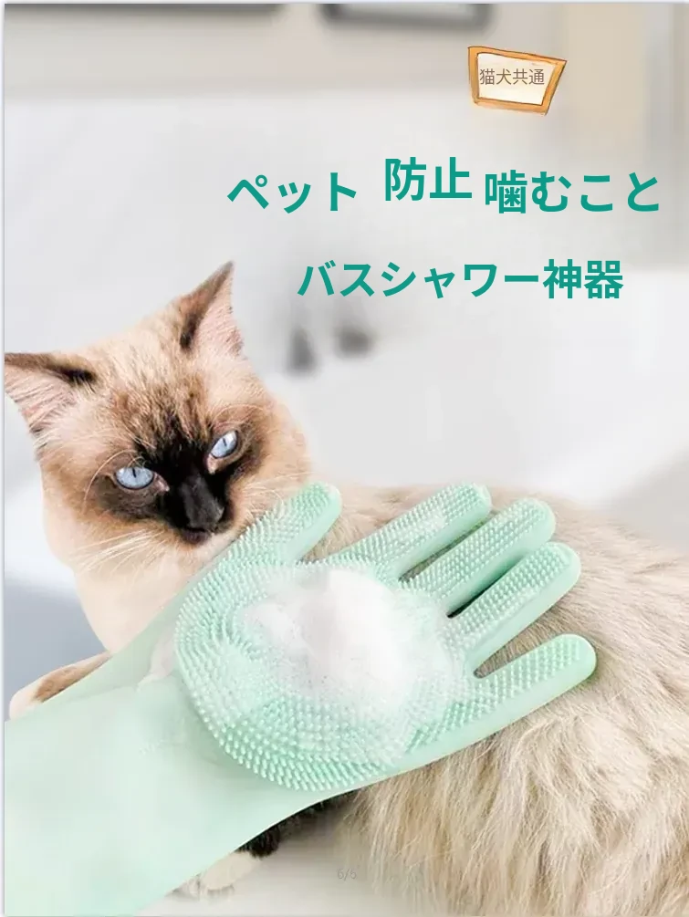 犬猫兼用!ペット用バスグッズ☆シリコンバスブラシ&グローブセット☆お手入れも楽々!引っかきや噛みつきを防ぎ、愛犬愛猫を優しく洗浄。快適なバスタイムをお届けします!