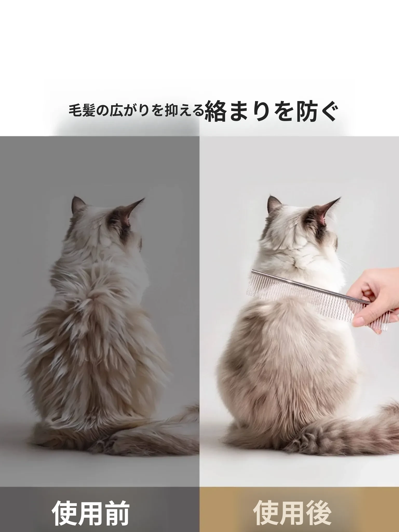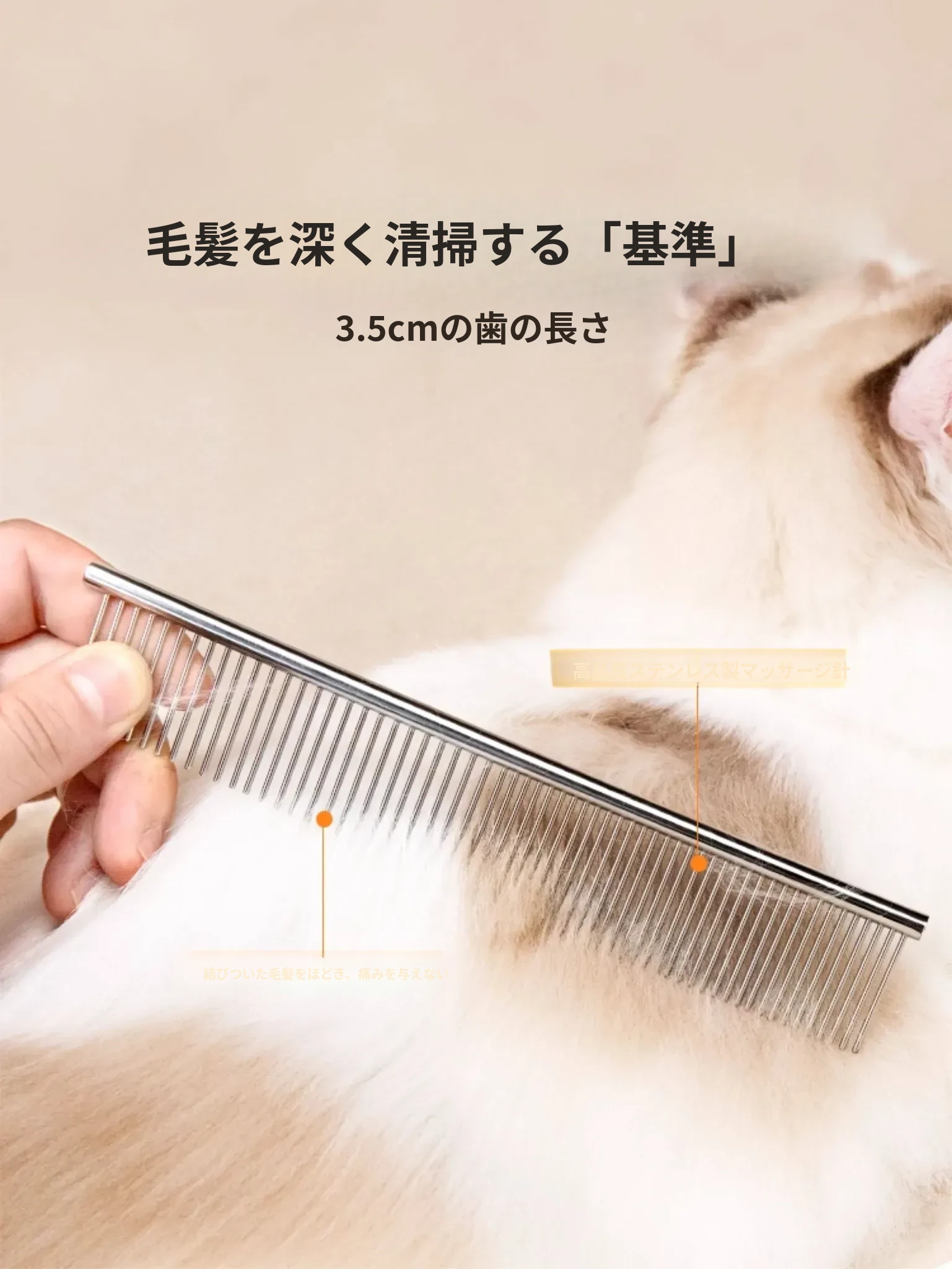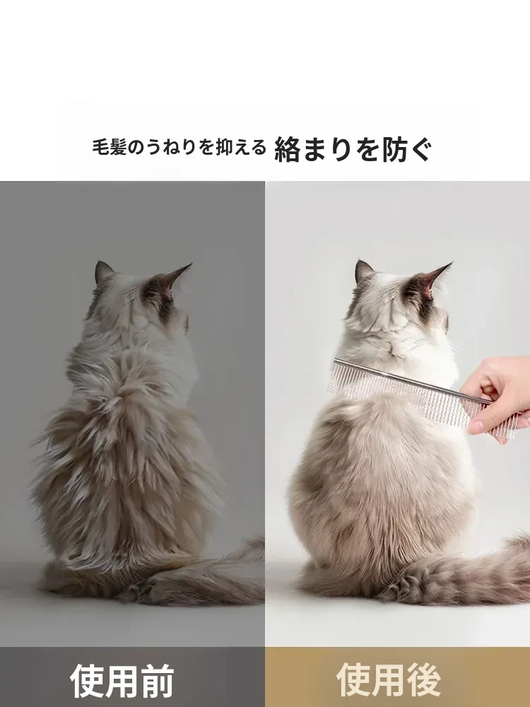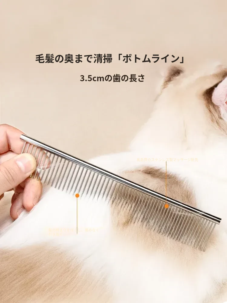 ペット用デタングラー・毛玉取りブラシ!犬や長毛猫に最適な密歯ステンレス製コームで、絡まりをすっきり解消。愛するペットの毛を美しく整え、ふわふわ感を引き出します!