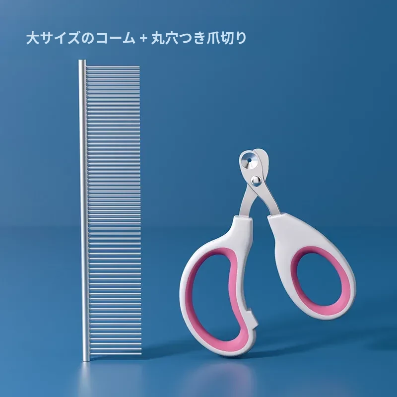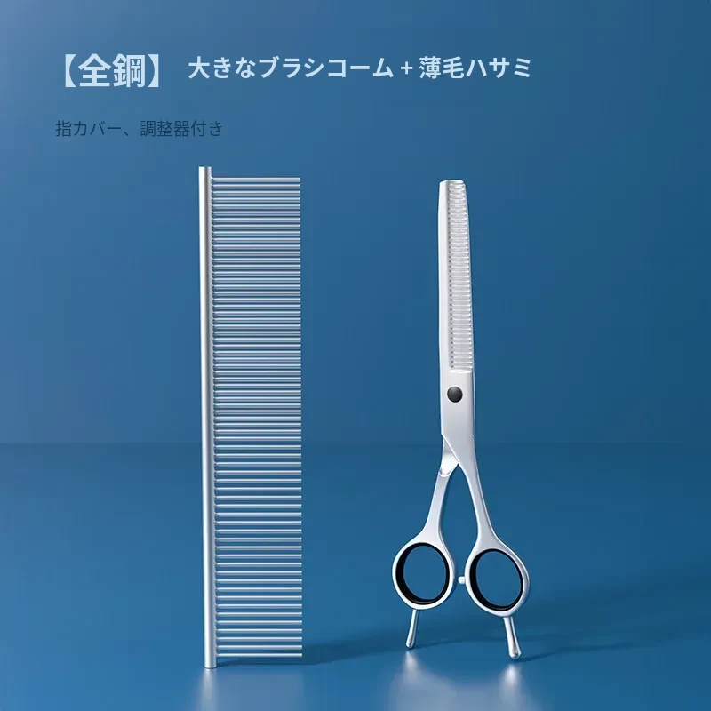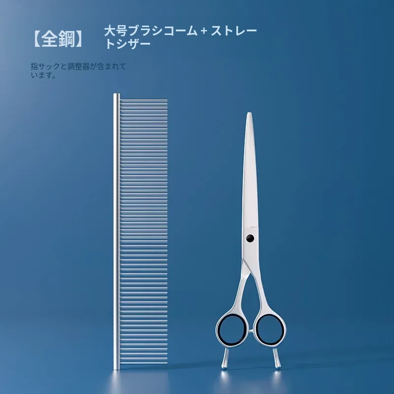 ペットブラシ【大】+7インチストレートシザー【指カバー、調整器付き】