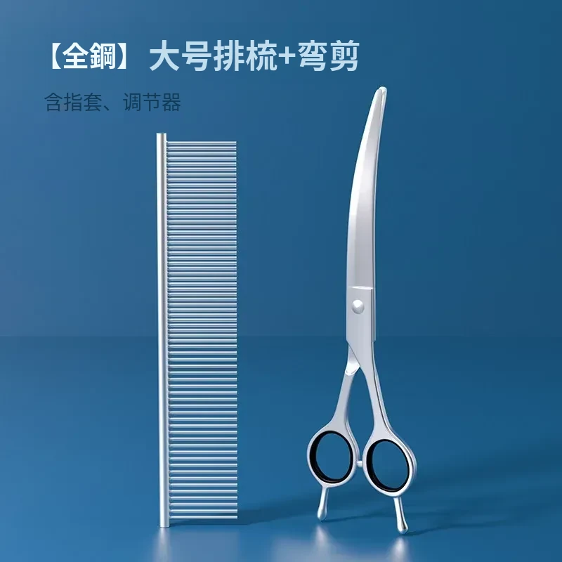 ペットブラシ【大】+7インチカーブシザー【指カバー、調整器付き】