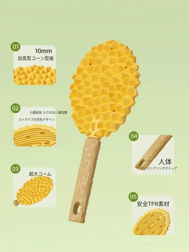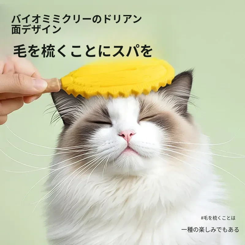ペット用ドリアンマッサージブラシ|猫の抜け毛をすっきり解消!多機能な毛取りブラシで、愛猫の毛並みを美しく整えます。快適なブラッシング体験を提供し、愛らしい猫ちゃんとの絆を深めましょう!