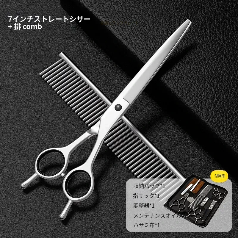 【アップグレード全鋼】7インチストレートシザー+コーム【毛を整える】