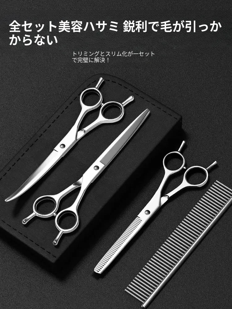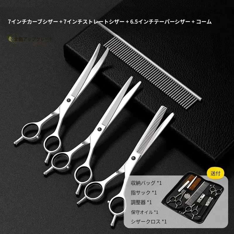 【アップグレード全鋼】7インチカーブシザー+7インチストレートシザー+6.5インチ歯ハサミ+コーム