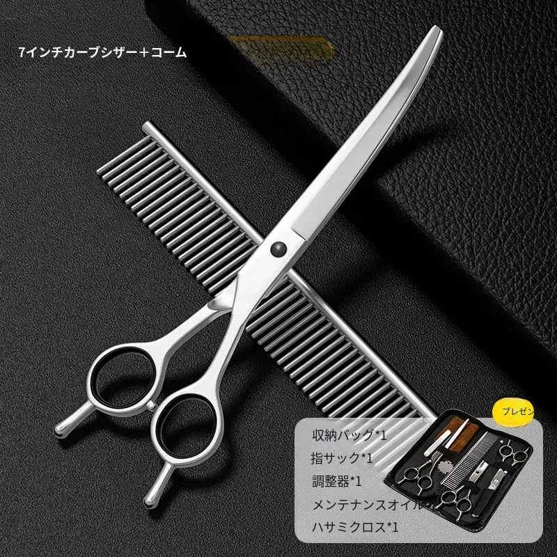 【アップグレード全鋼】7インチカーブシザー+コーム【毛を整える】