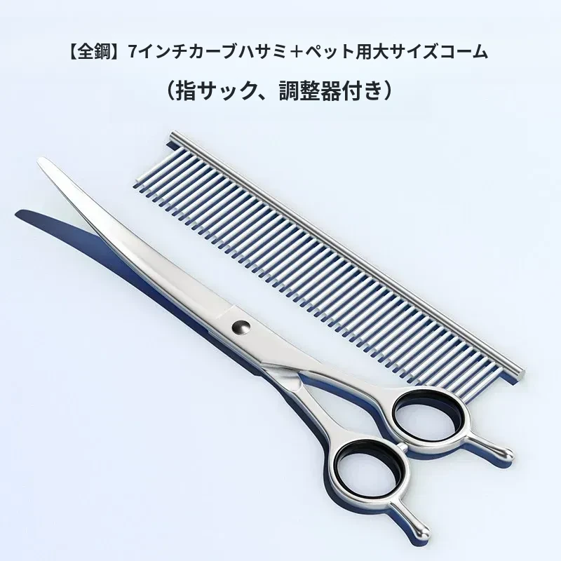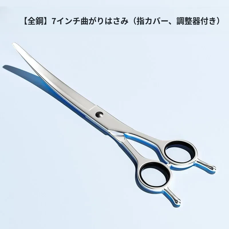 【アップグレード全鋼】7インチカーブシザー(指サック、調整器付き)