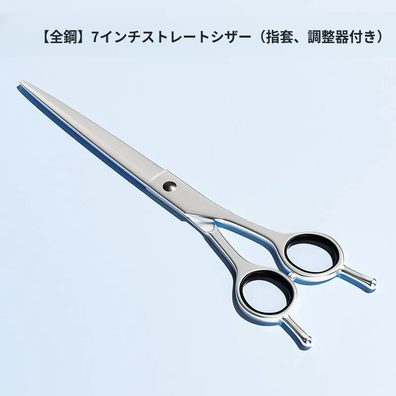 【全鋼】7インチストレートシザー(指サック、調整器付き)