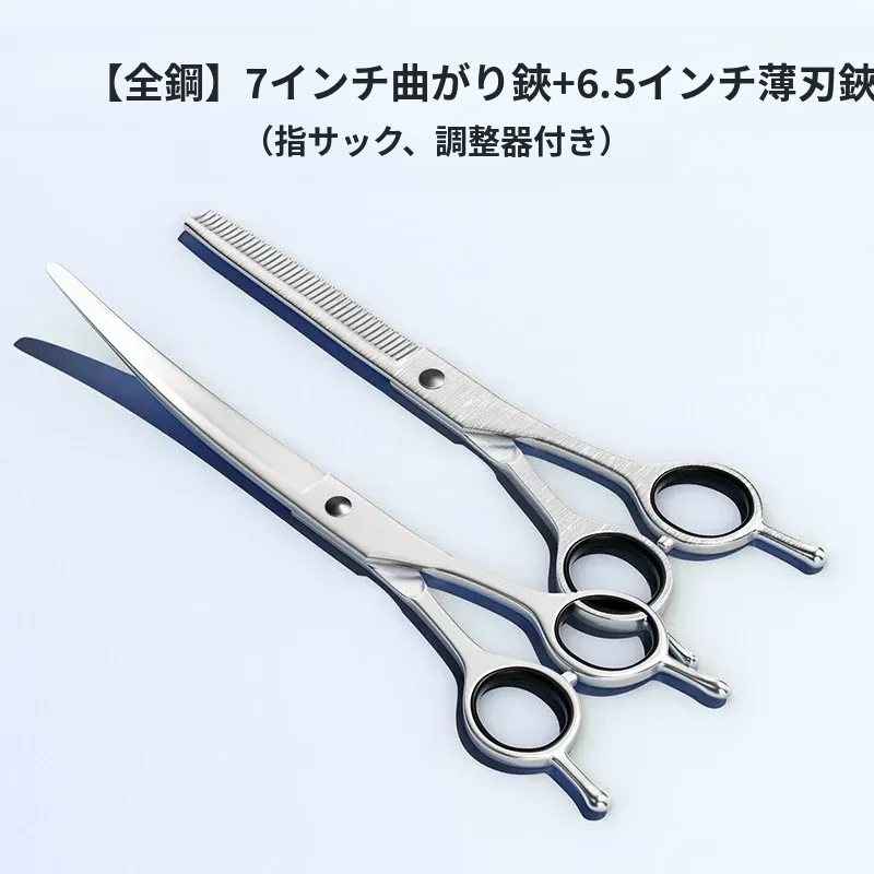 【全鋼】カーブシザー+ストレートシザー(指サック、調整器付き)