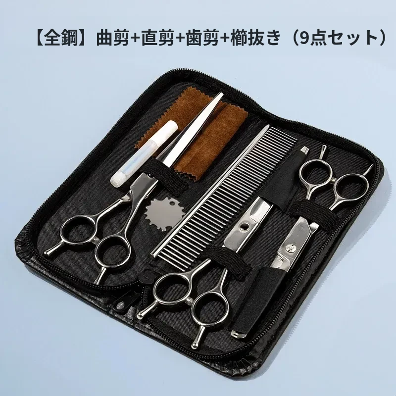 【全鋼】フルセット-ペット美容シザーセット(9点セット)