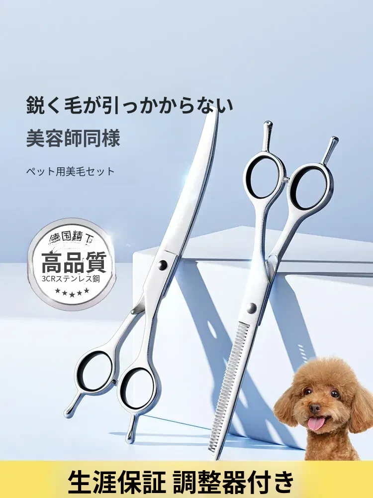 犬用美容ハサミセット - テディや他の犬種に最適なカーブ刃で、愛犬の毛を簡単にケア!プロの仕上がりを自宅で実現。