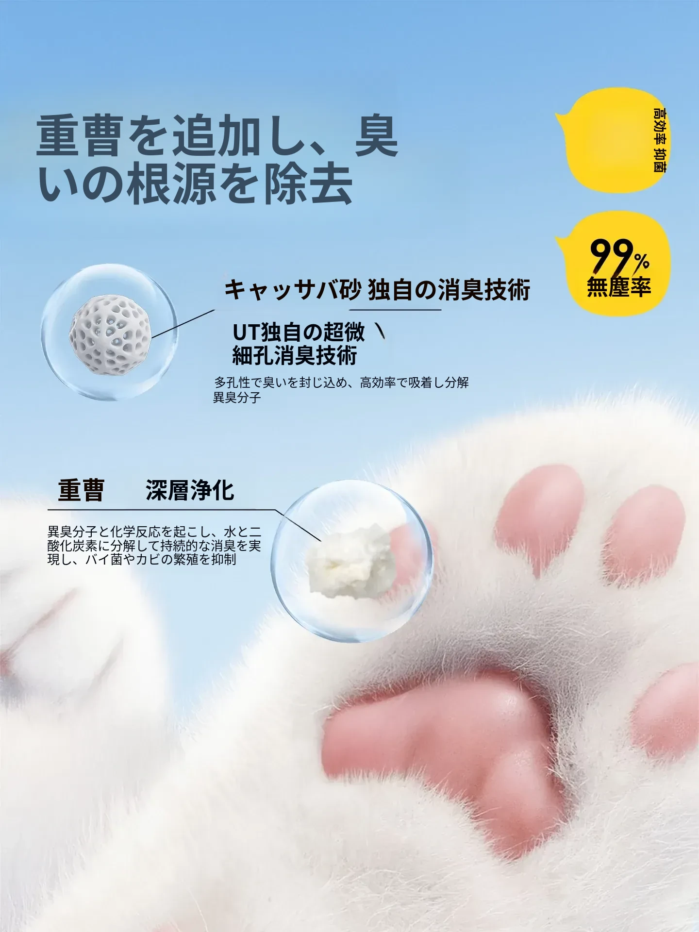 【6個買うと2個無料✅ まとめ買いおすすめ】純キャッサバ猫砂20斤-8パック
