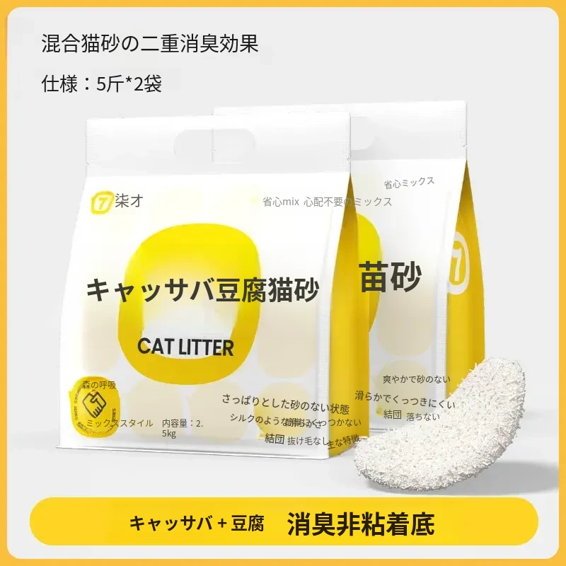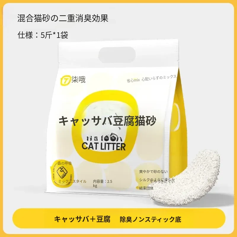 【30%キャッサバ+70%豆腐】混合猫砂5斤-1パック