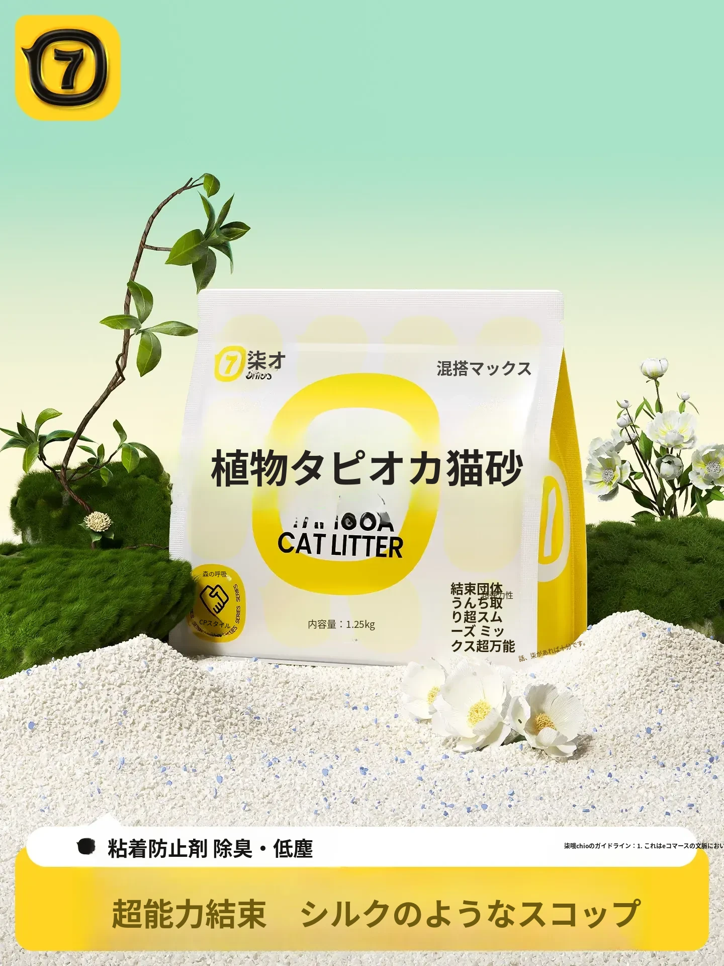 柒哦無添加キャッツタワー用タピオカ猫砂 - 幼猫専用、ほぼ無塵で、犬用と混合可能!豆腐砂の消臭効果で、底にくっつかずお手入れ簡単!快適なトイレ環境を提供します。