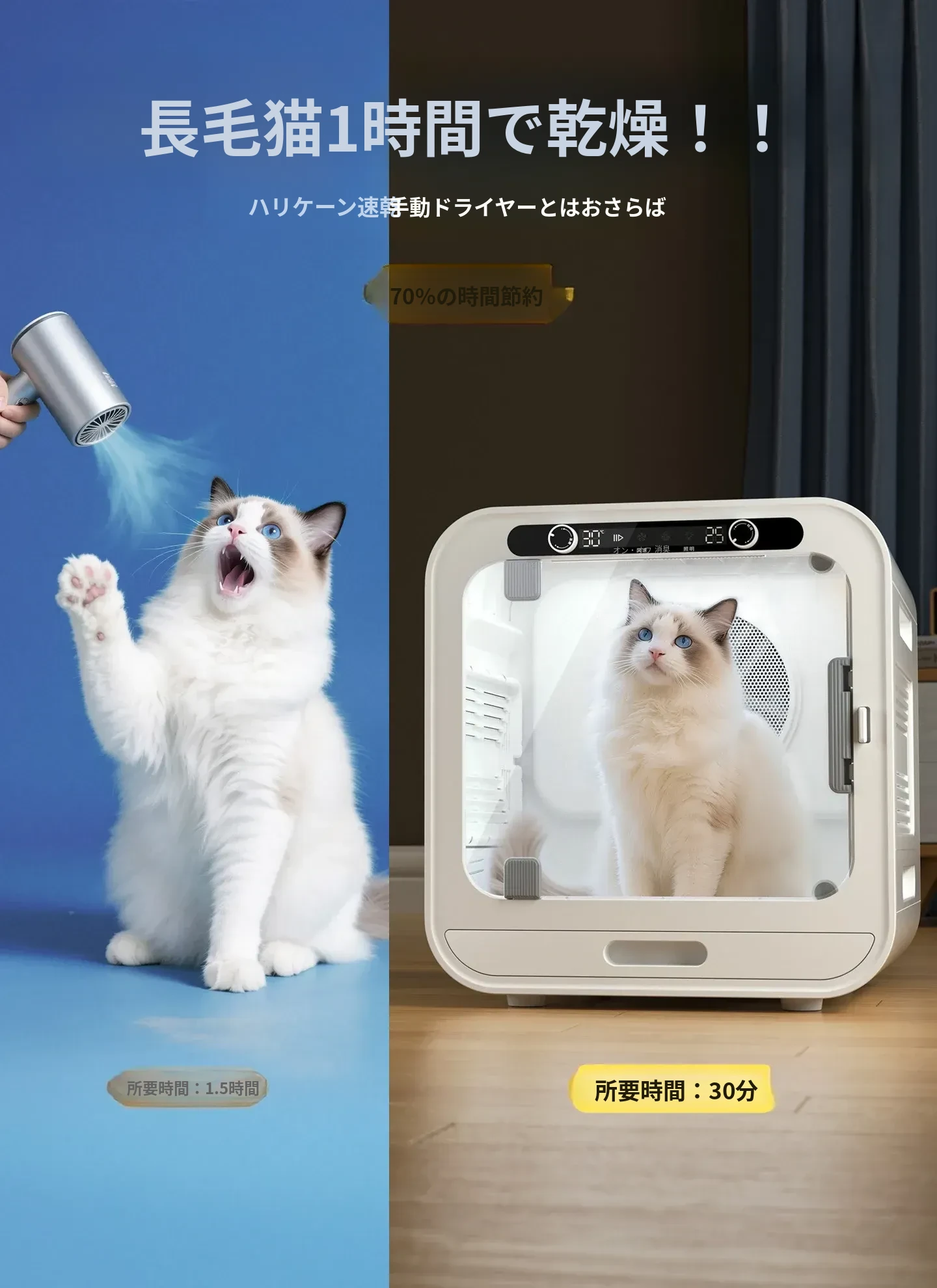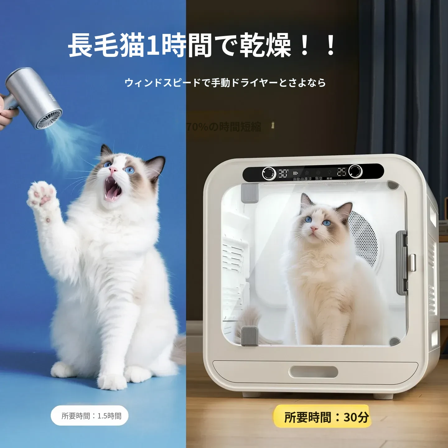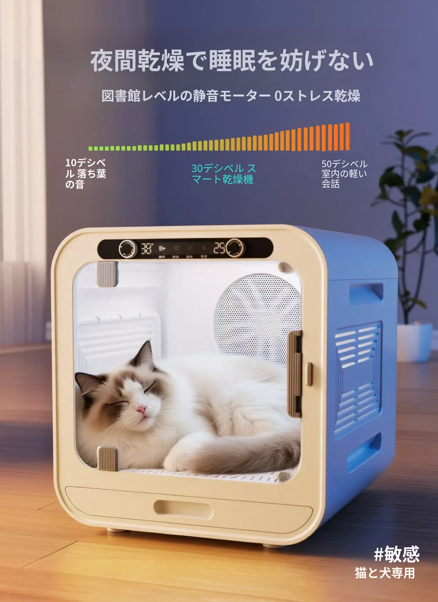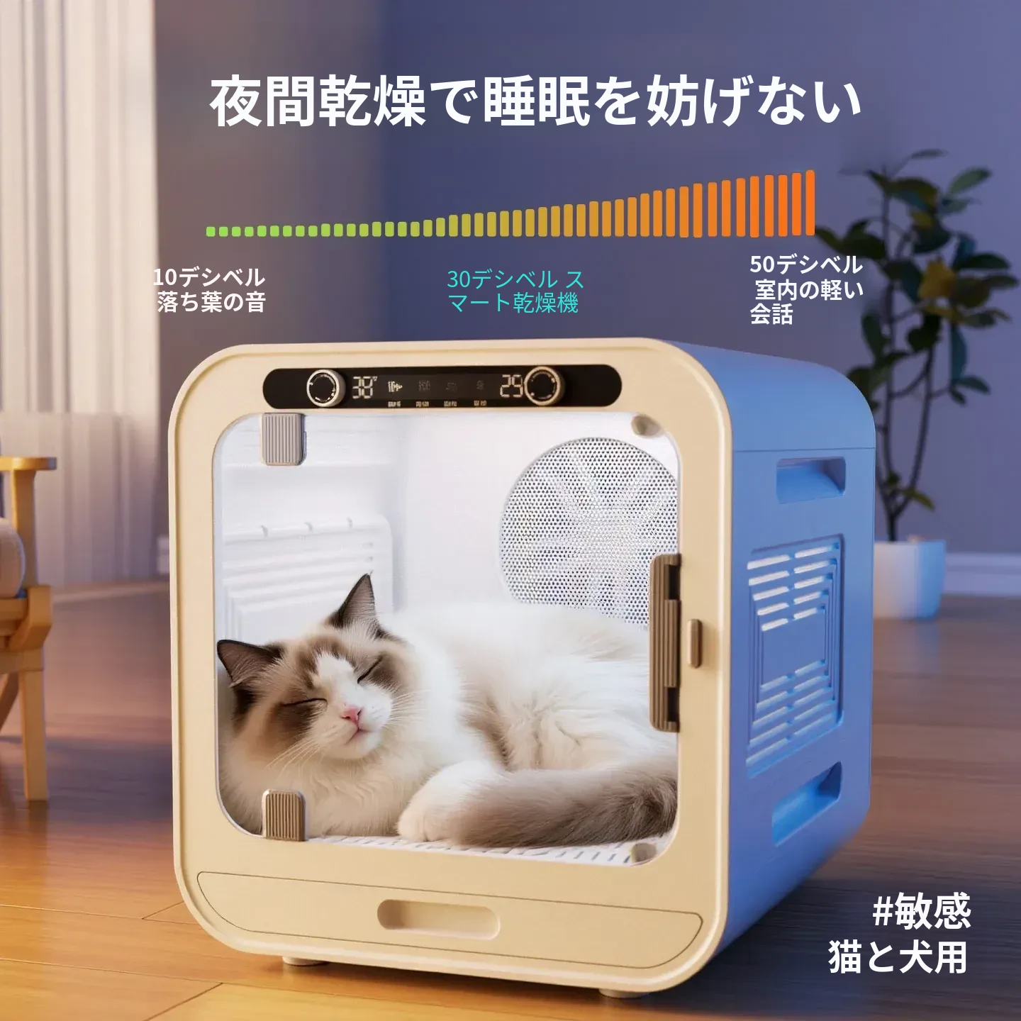 柒哦ペット乾燥ボックス - 猫ちゃん・犬ちゃん用の家庭用小型スマート静音ドライヤー!お風呂上がりの毛を素早く乾かし、ふわふわの仕上がりに。愛するペットを快適にサポートする必須アイテム!