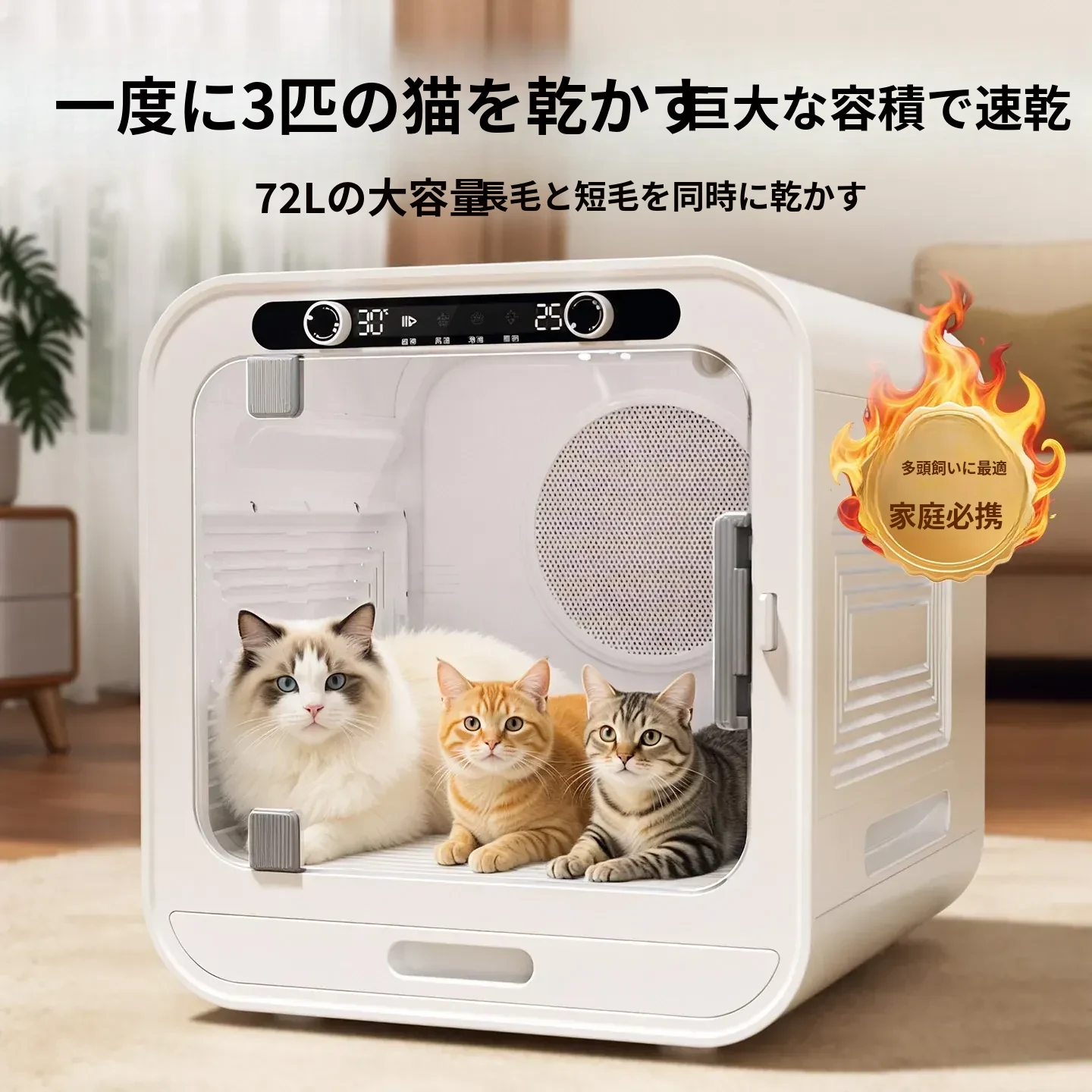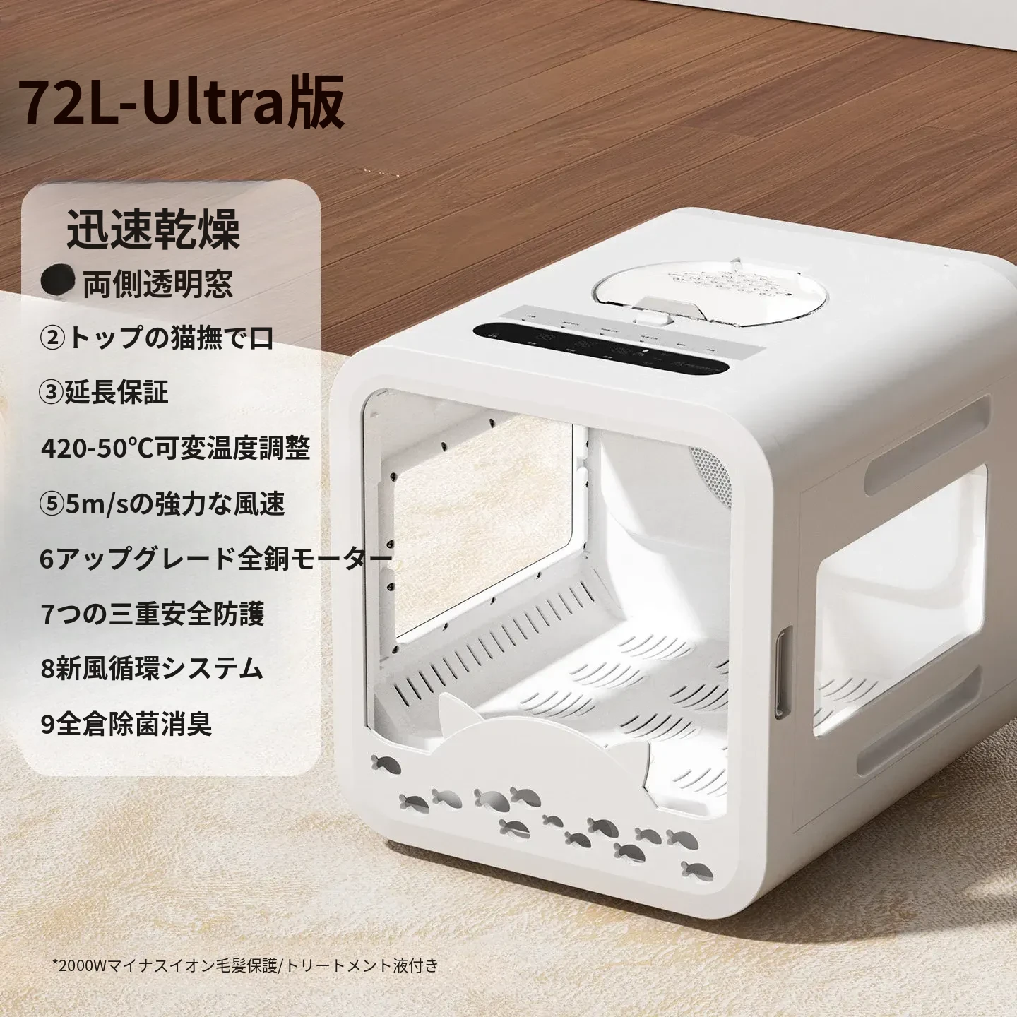 【ultra版】三面窓+猫好き口+1500W+72L+新鮮空気循環+マイナスイオン美毛+全体除菌