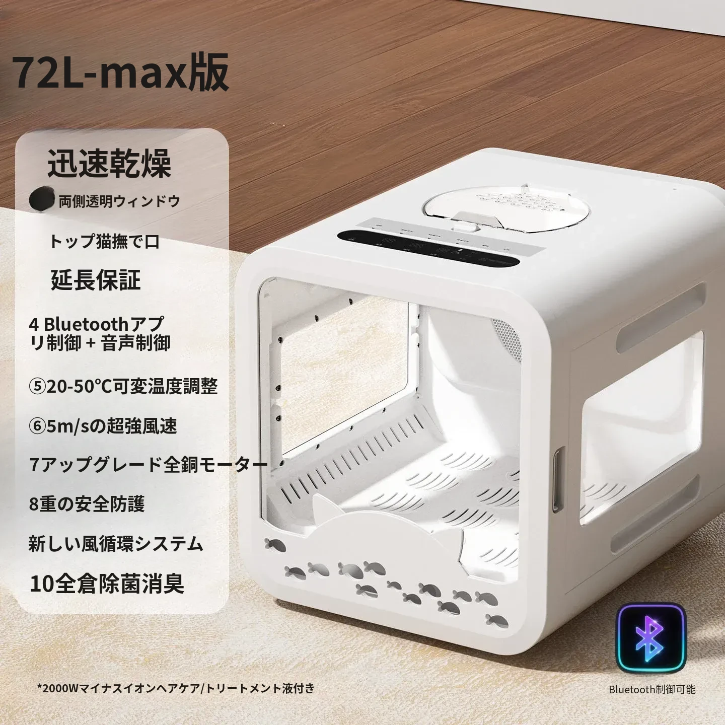 【MAX版】ランプ&三面窓+スマホアプリ+AI温度コントロール+1500W+72L+新鮮空気循環+マイナスイオン美毛+全体除菌