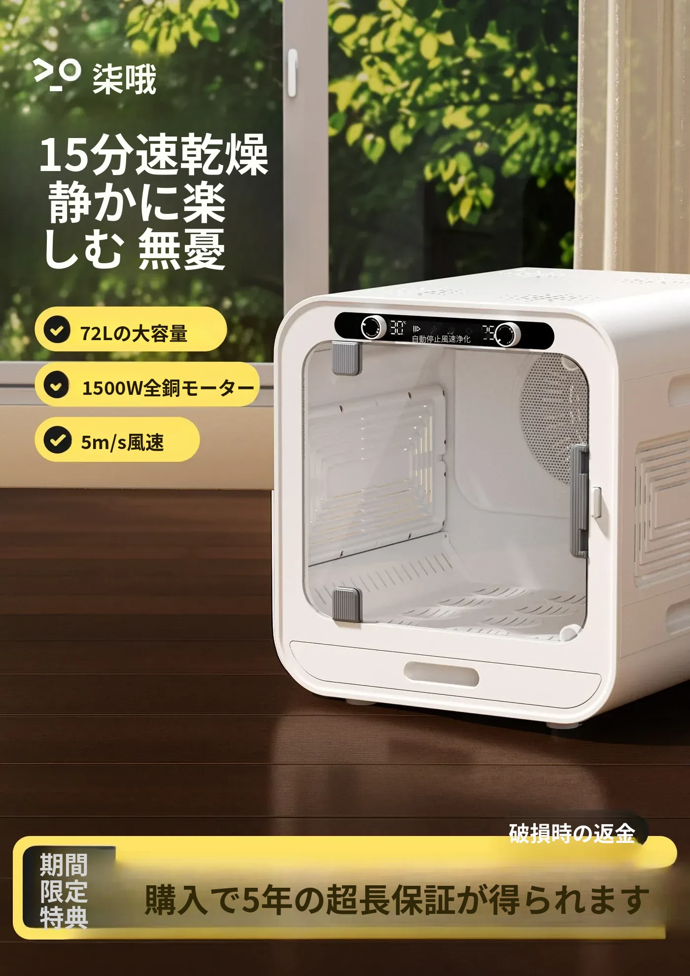 【トップグレード版】1500W+72L+新鮮空気循環+全体除菌