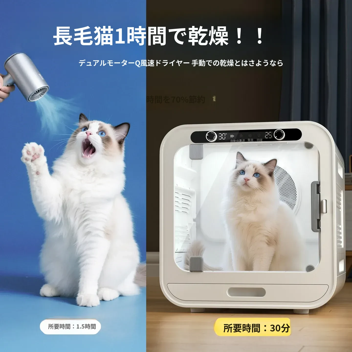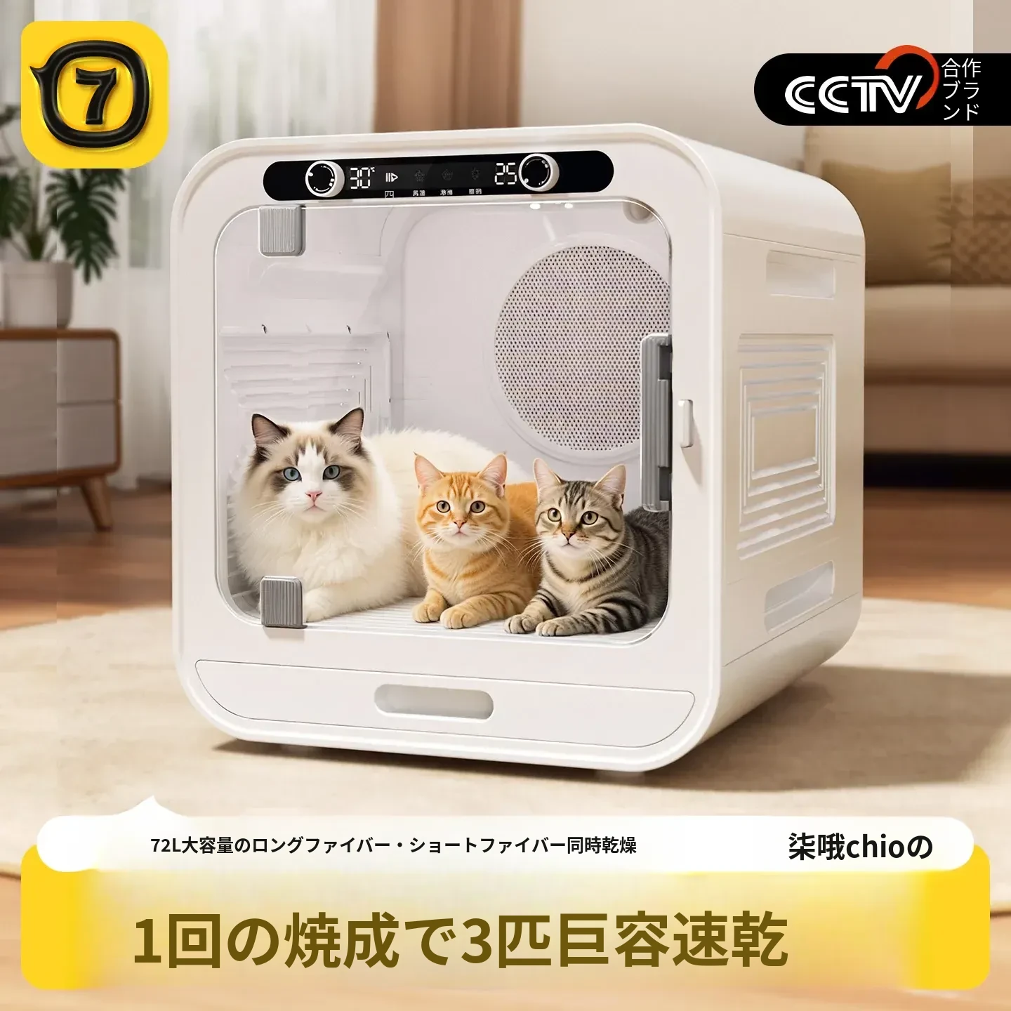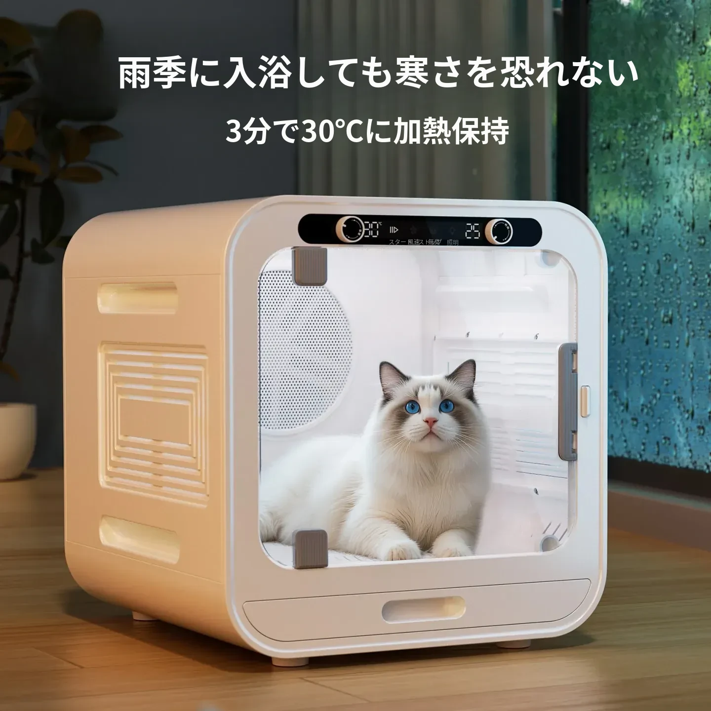 柒哦ペット乾燥ボックス - 猫と犬のための家庭用ドライヤー!静音設計でペットも安心、コンパクトで使いやすいスマート機能搭載。お風呂上りの毛の乾燥を迅速にサポートする必需品です!