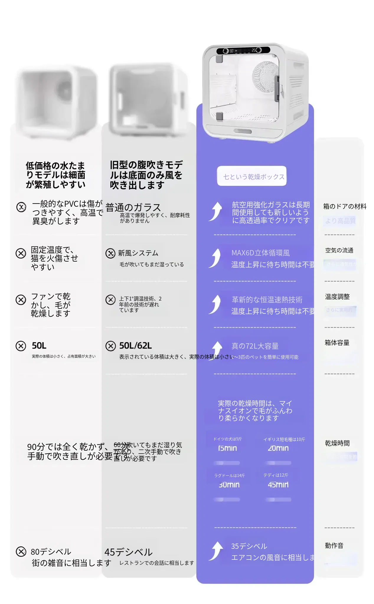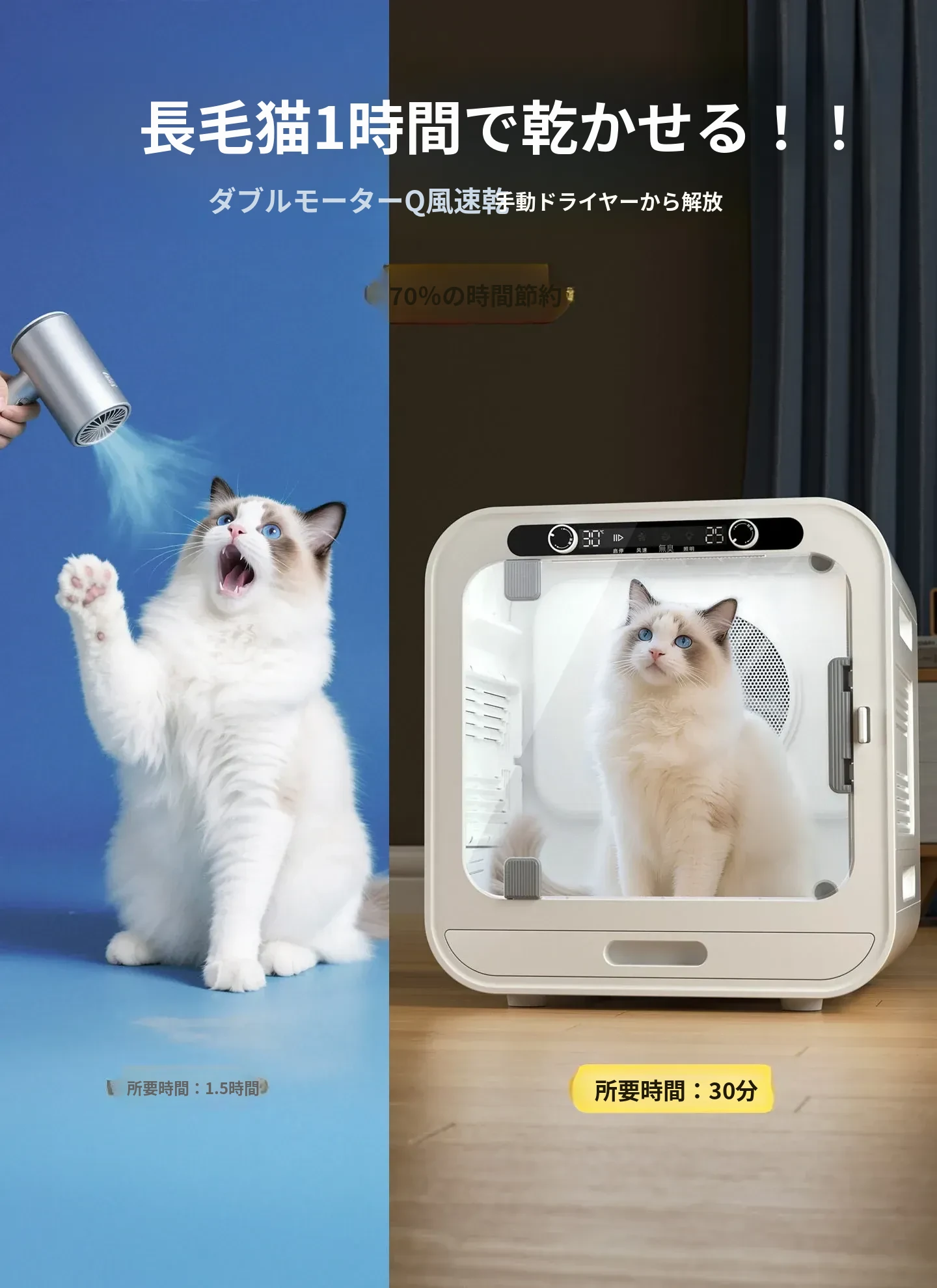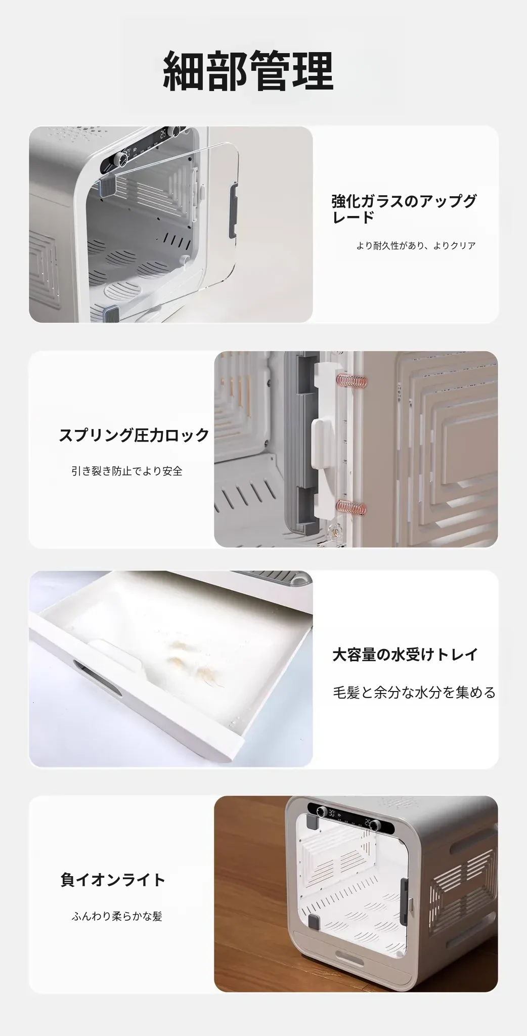 柒哦ペット乾燥ボックス - 猫と犬のための家庭用ドライヤー!静音設計でペットも安心、コンパクトで使いやすいスマート機能搭載。お風呂上りの毛の乾燥を迅速にサポートする必需品です!