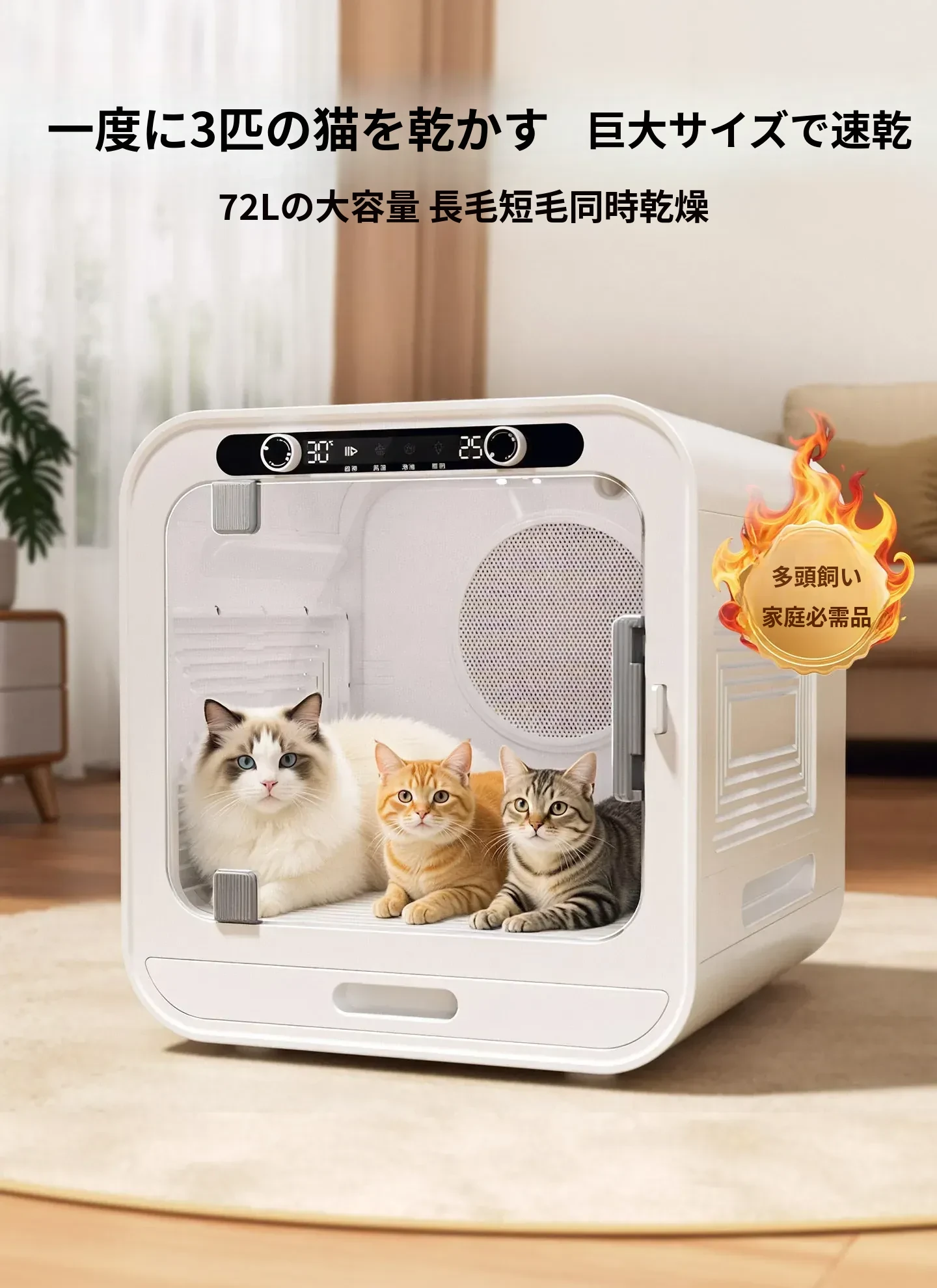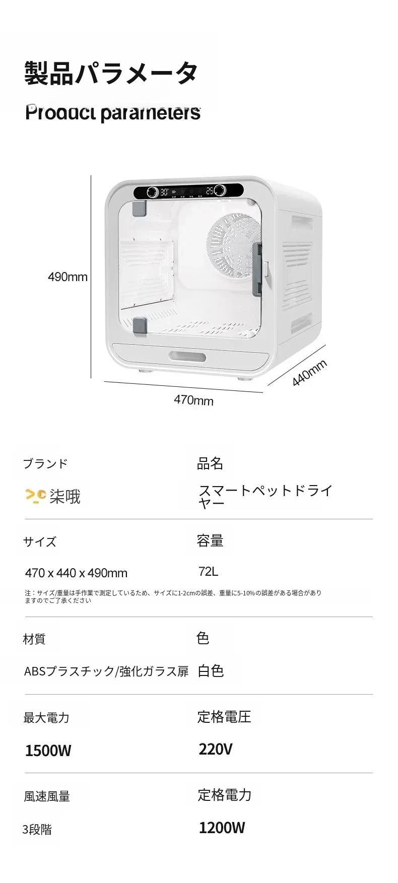 【プロ版】スマホアプリ+AI温度制御+1500w+72L+新鮮空気循環+マイナスイオン美毛+全倉除菌