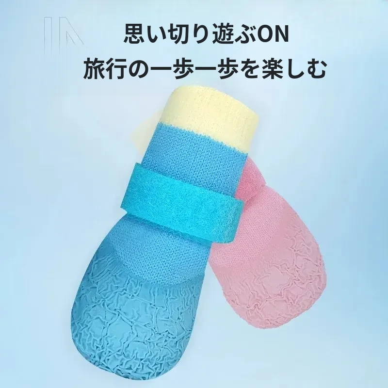 柒哦犬用防滑防水ソックス!柔らかい底で耐摩耗性抜群の犬靴、コーギー、柴犬、ビションフリーゼに最適なペットシューズカバー!大切な愛犬の足を守るために、清潔で快適な散歩を実現します!