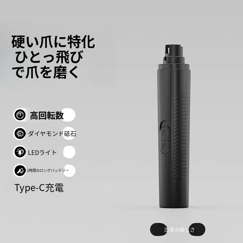 【玄采黒】ペット爪磨き器【LED血管照射+静音】
