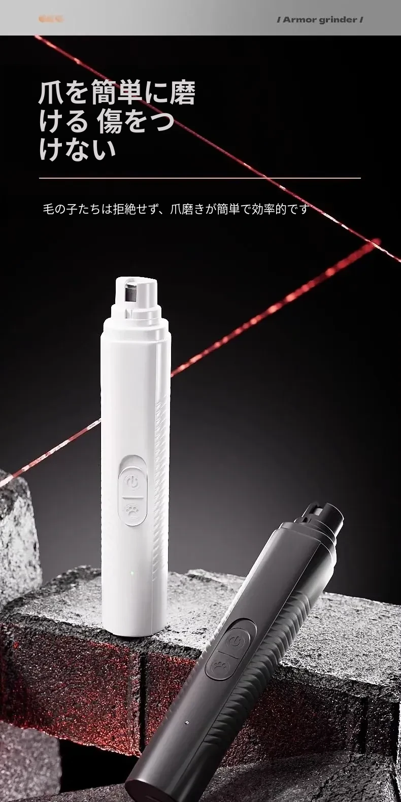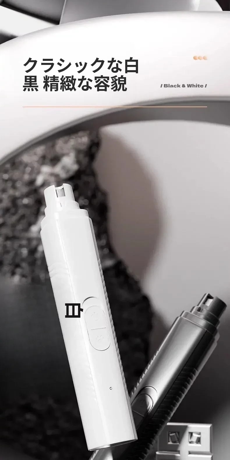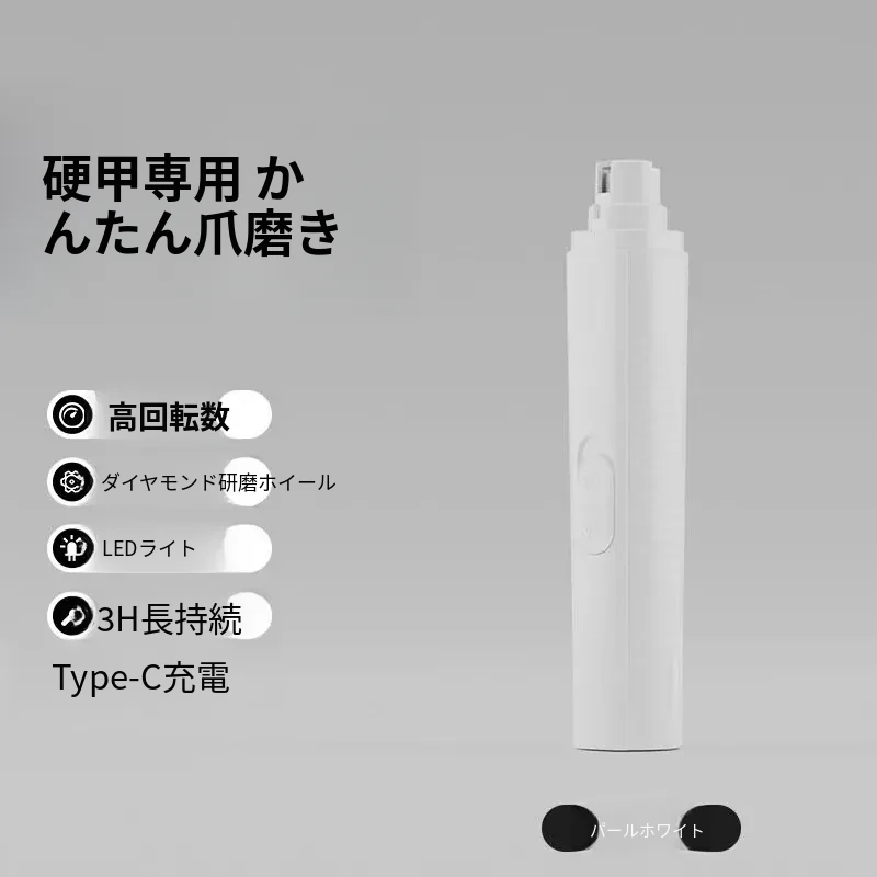 【パールホワイト】ペット爪磨き器【LED血管照射+静音】
