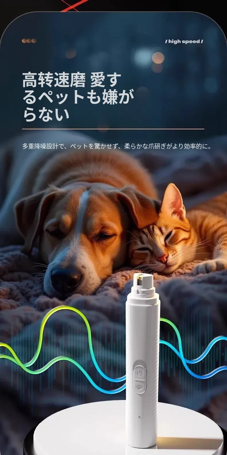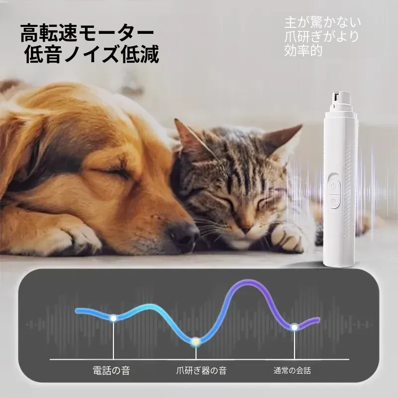 静音&LEDライト付き!ペット用電動爪磨き器 - 小型から大型犬まで対応!猫や犬の爪を安全に、簡単にケアできる便利アイテムです。愛するペットの爪のお手入れを楽しく!