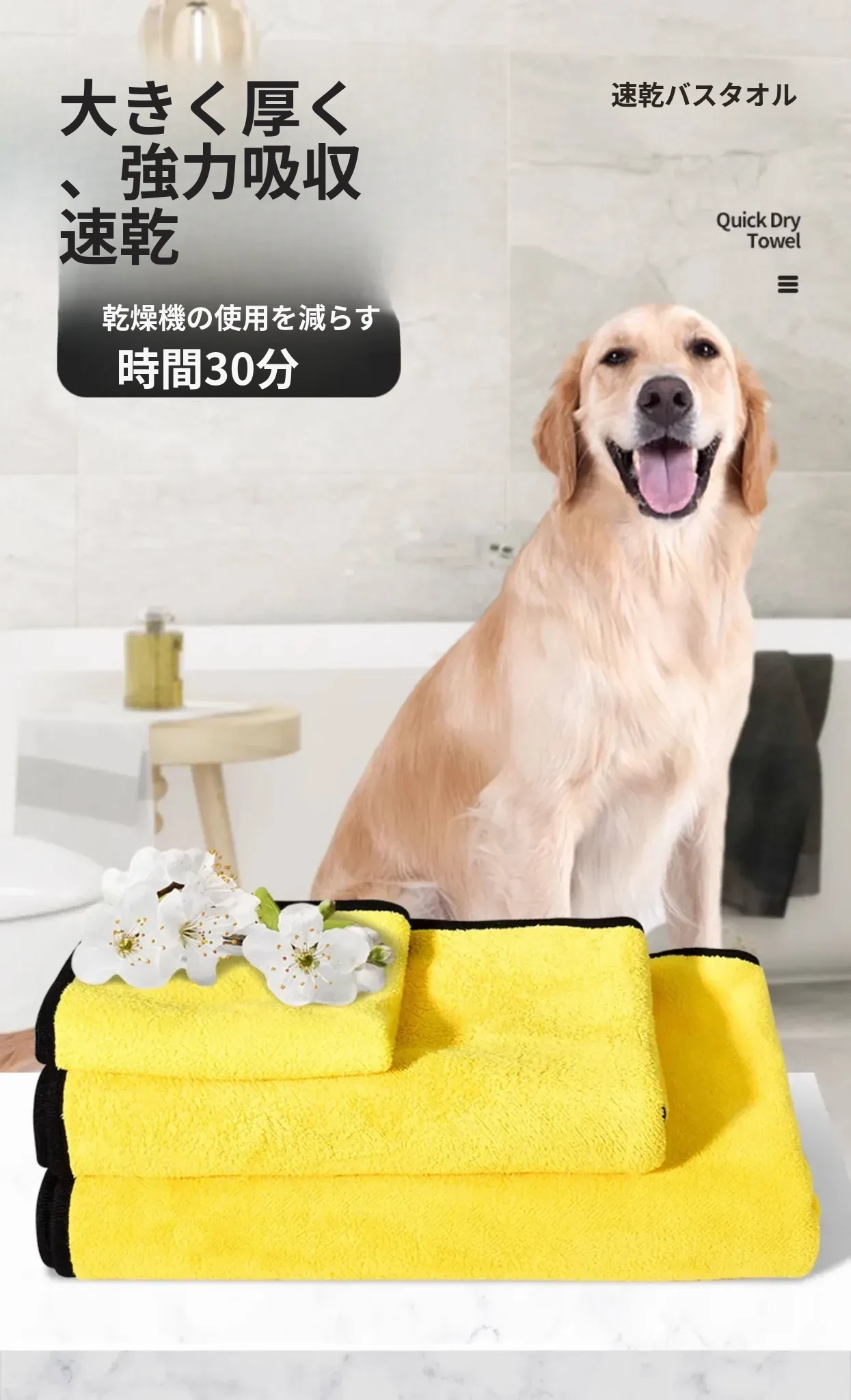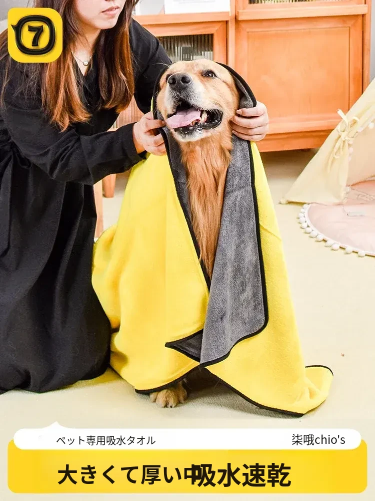 ペット用速乾タオル 大型犬・猫用 吸水性抜群!ゴールデン・テディ・ボーダーコリーに最適なバスタオルで、お風呂後の乾燥もスピーディに。愛するペットを優しく包み込む逸品!