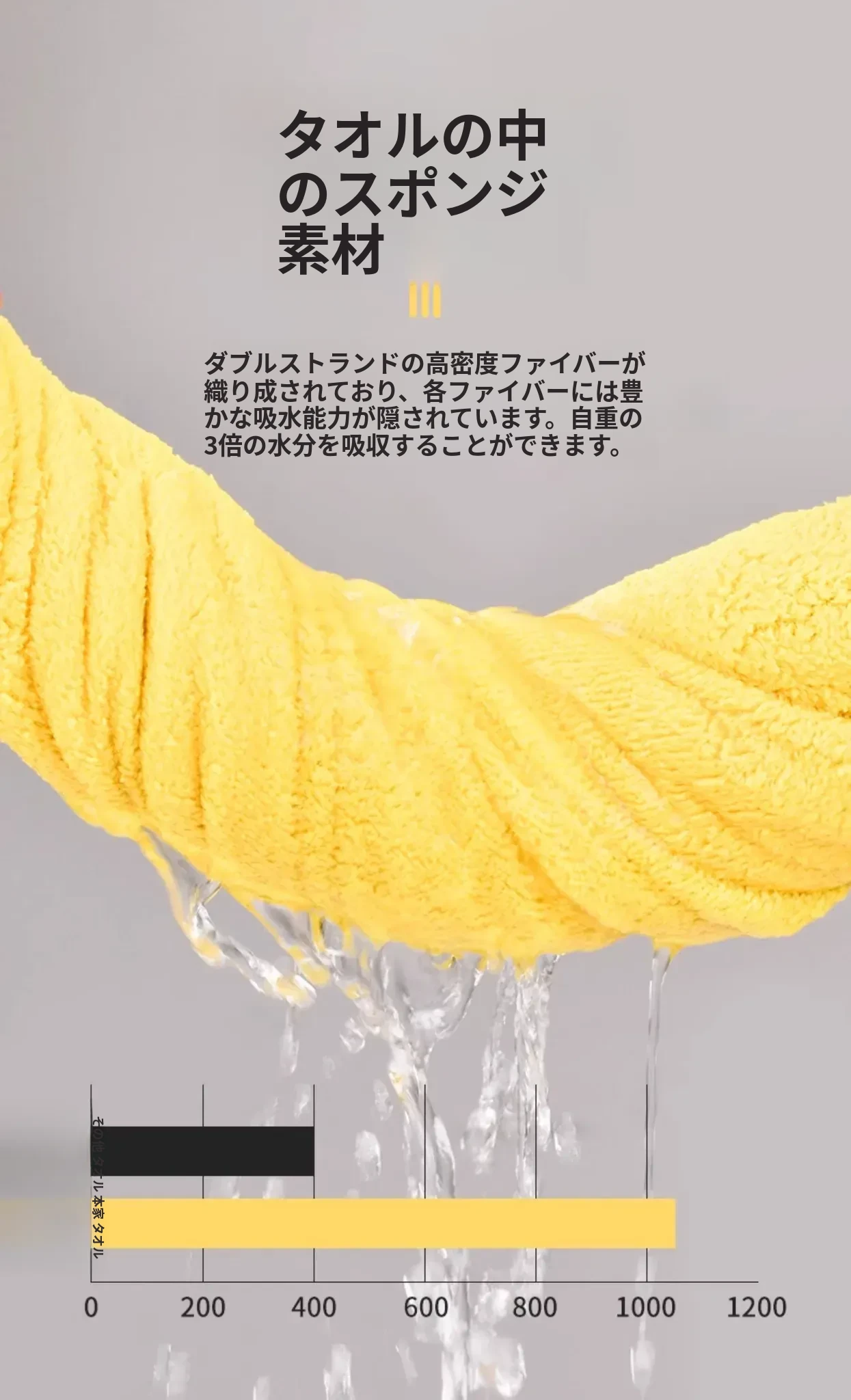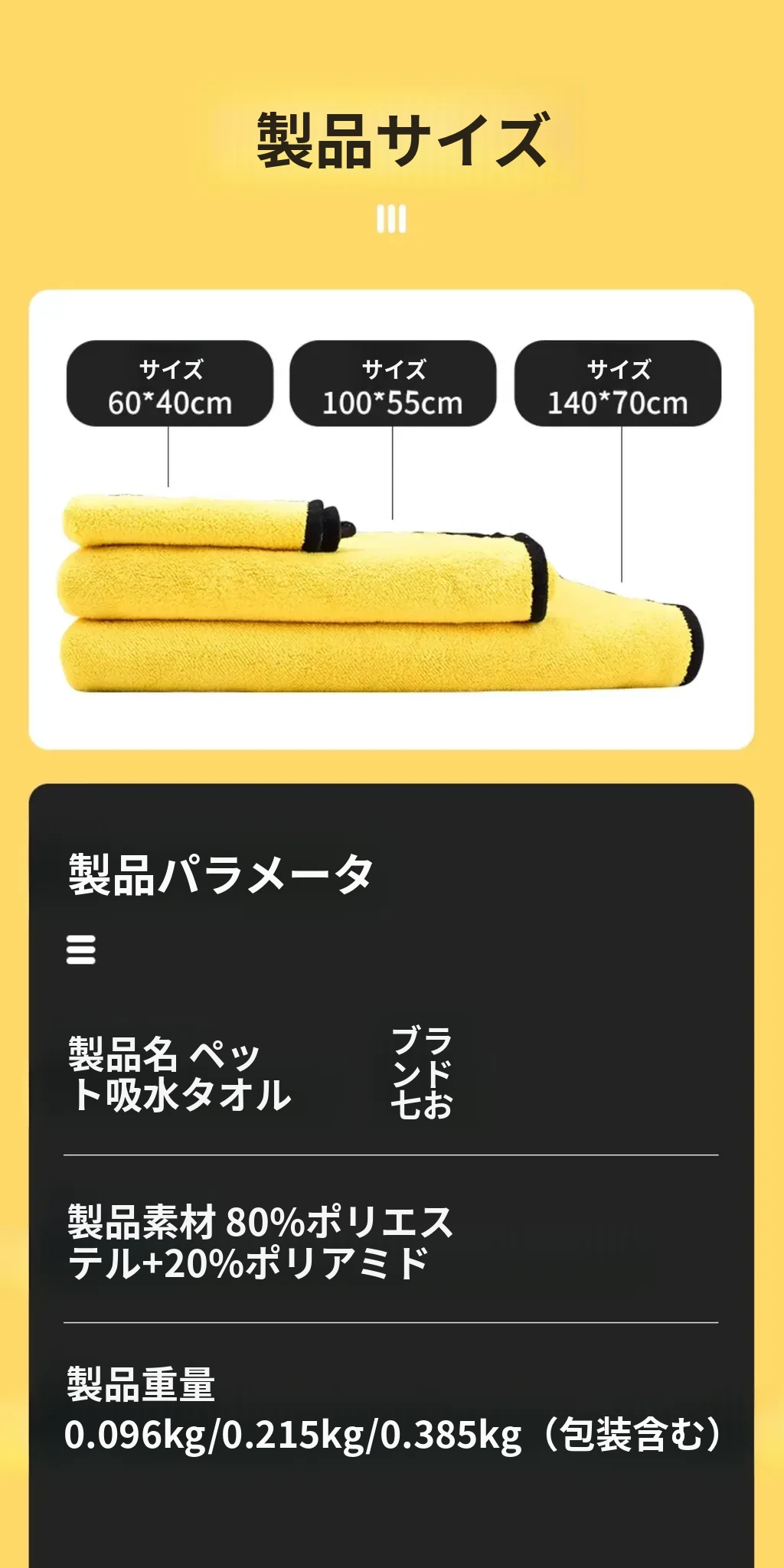 吸水タオル140*70cm ロックイエロー