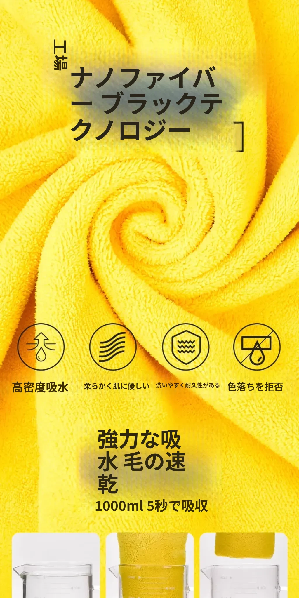 吸水タオル110*55cm ロックイエロー