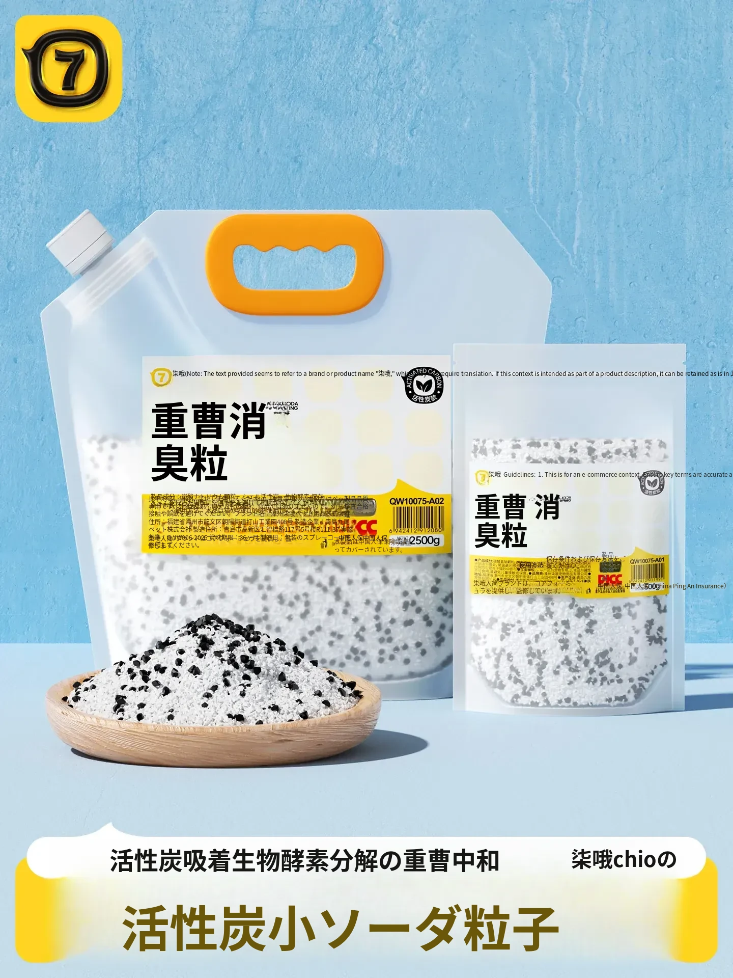 消臭効果抜群!ペット専用バイオ酵素入り重曹猫砂 - 大粒活性炭配合で、尿の匂いをしっかり除去!抗菌効果もあり、愛猫の快適なトイレ環境を実現します。