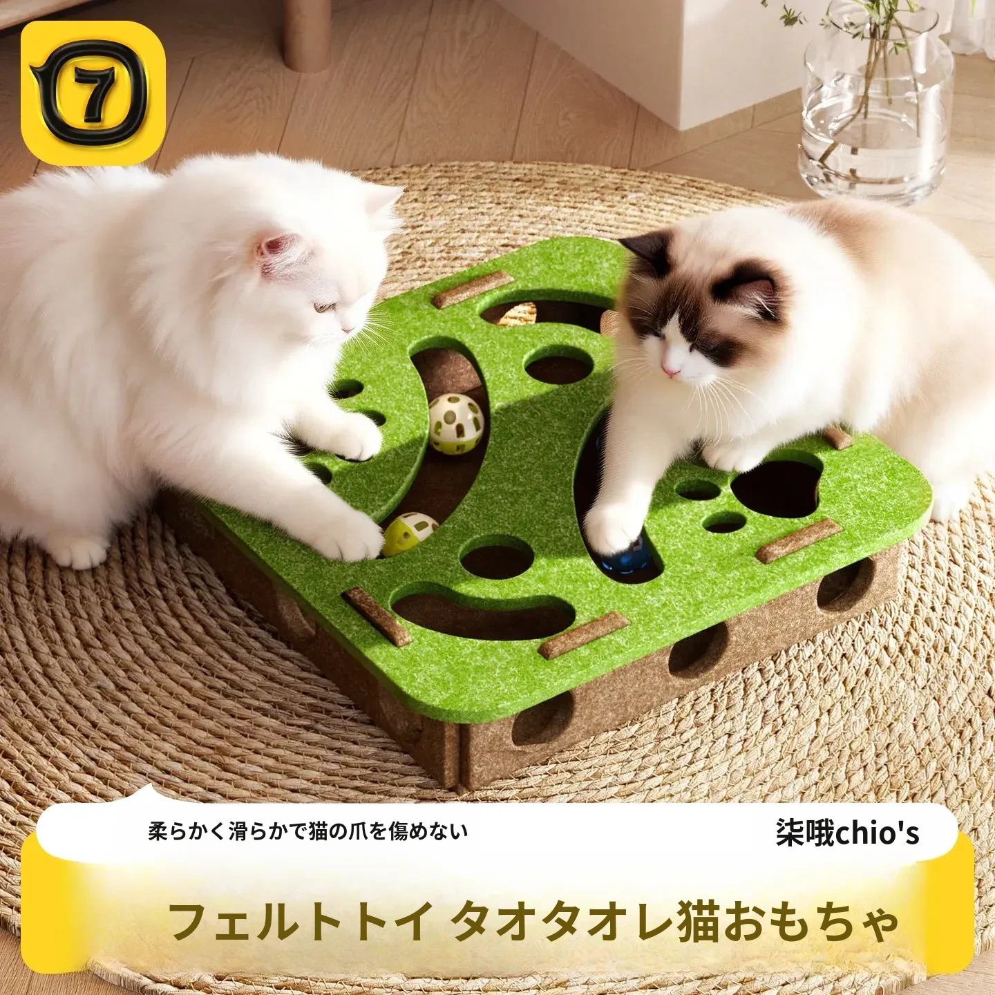 フェルト製の猫ボックス - 猫ちゃんが夢中になるおもちゃ!爪とぎ付きで、退屈を解消する知育迷路。愛猫の遊び心を引き出す、楽しいアイテムです!