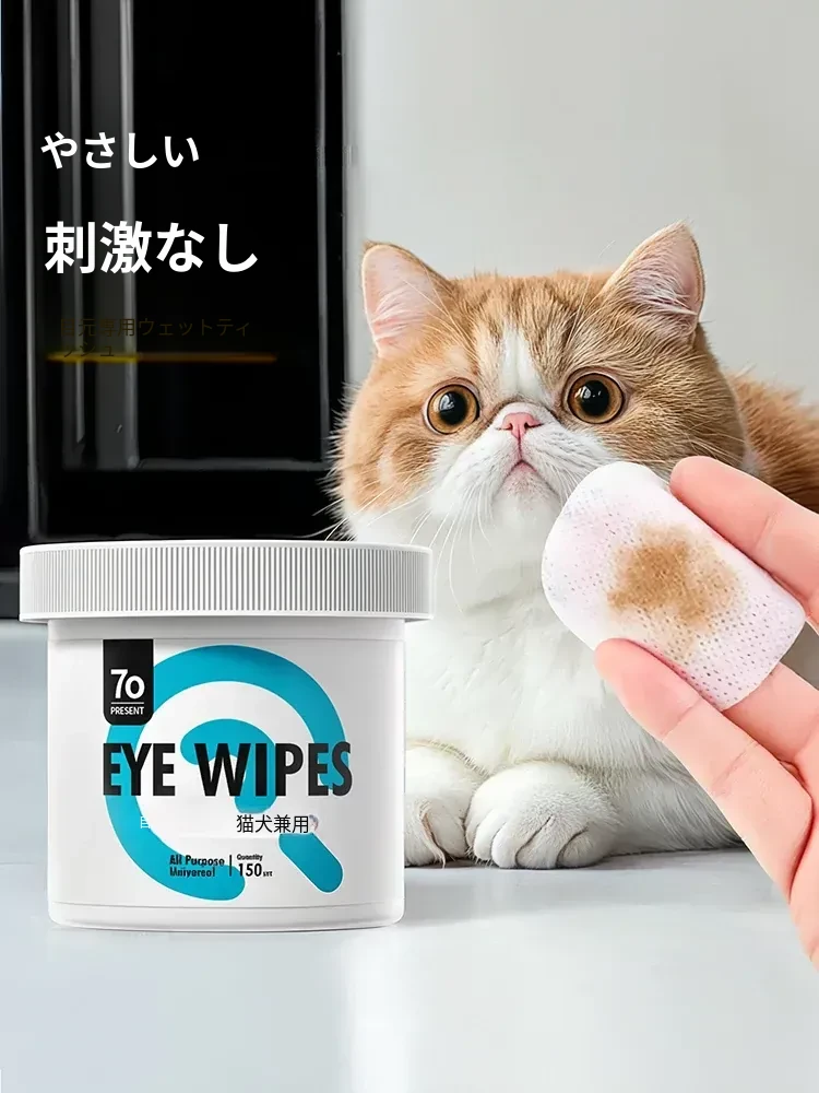 猫ちゃんの涙やけを簡単に解消!アイケア専用ウェットティッシュ - ペルシャ猫、ビションフリーゼ、ポメラニアンなどのペットに最適なクリーニング用品。清潔で健康的な目元を守る!