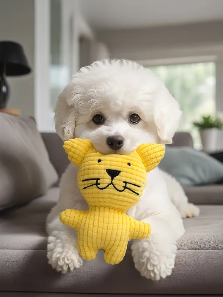 噛んでも安心!犬のストレス解消に最適な音が出るぬいぐるみおもちゃ - テディベア・幼犬・小型犬・ビションフリーゼ向け!愛犬の歯磨きと遊びを同時に楽しめるアイテムです。
