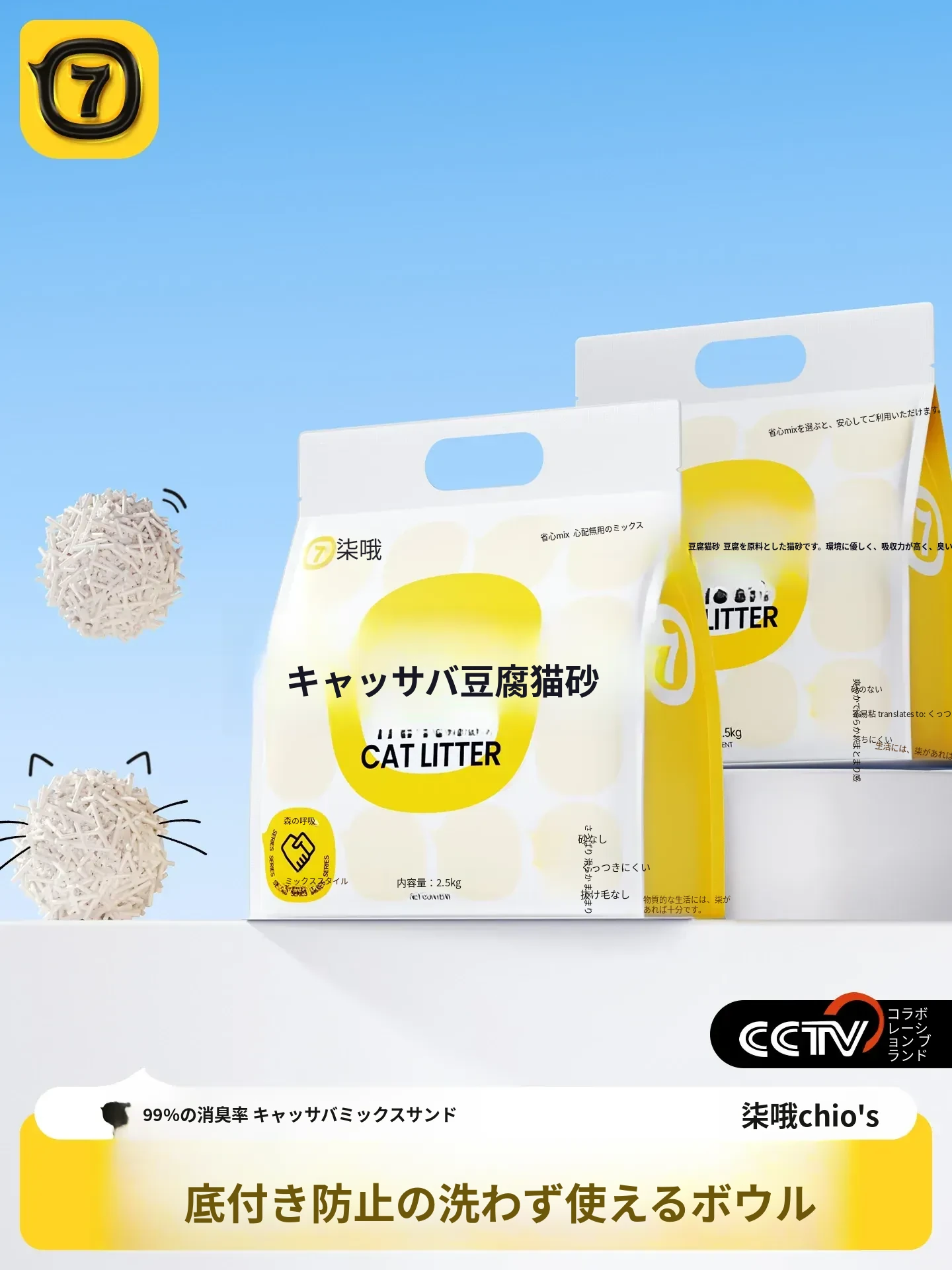柒哦無添加キャッツタワー用タピオカ猫砂 - 幼猫専用、ほぼ無塵で、犬用と混合可能!豆腐砂の消臭効果で、底にくっつかずお手入れ簡単!快適なトイレ環境を提供します。