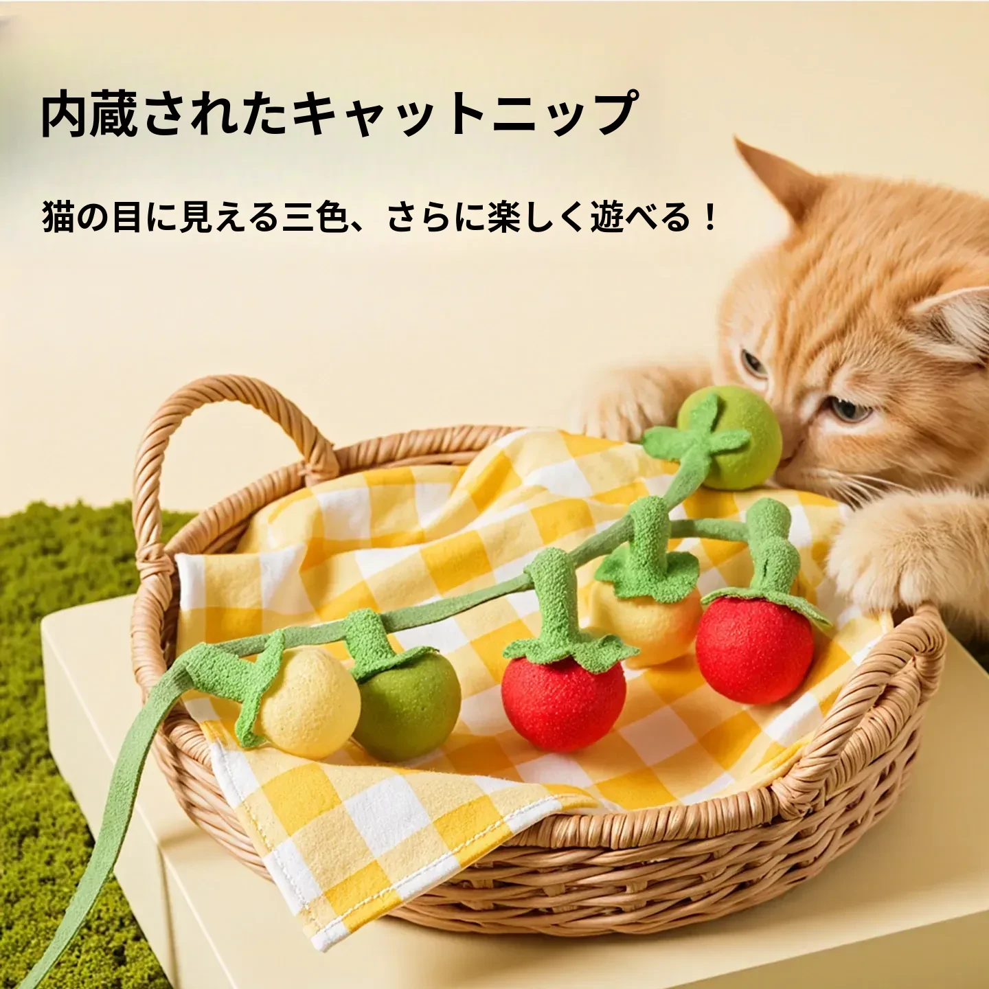 猫のおもちゃ 小さなトマトと柿の串 猫を楽しませるおもちゃ 音の出るおもちゃで自分で遊べる!噛んでも安心な耐久性設計!猫ちゃんの退屈解消に最適!