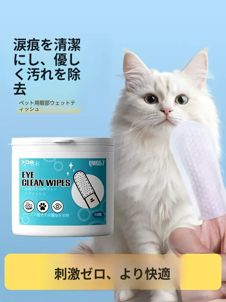 愛猫の涙やけをすっきり解消!ペット専用アイケアウェットティッシュ|可愛いポメラニアンやビションフリーゼにも最適!目の周りを優しくケアし、清潔な瞳を保ちます。