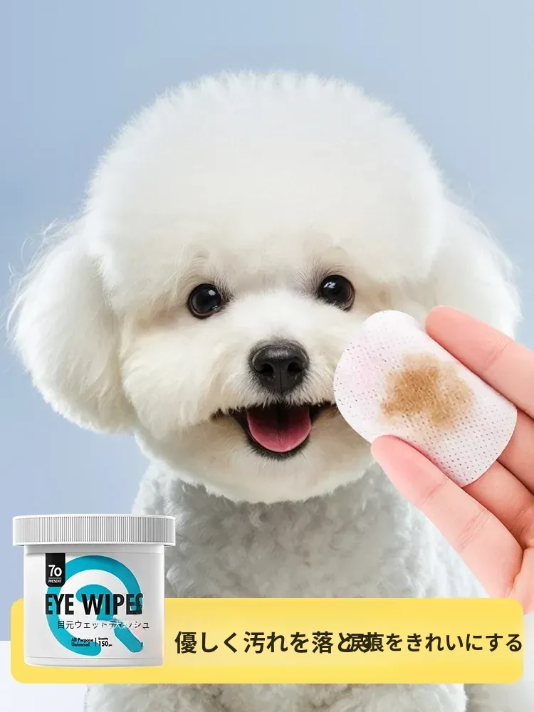 犬猫用涙やけクリーナー!ビションフリーゼ・ポメラニアン・テディ・猫に最適なペット専用ウェットティッシュ。愛するペットの目元を清潔に保ち、健康的で美しい瞳をサポートします!